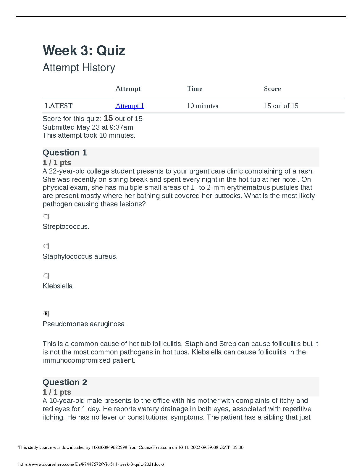 Prepare to excel in your NR 511 course with this comprehensive study guide for the Week 3 Quiz. This verified resource, updated for the 2025/2026 academic year, provides the complete set of questions along with their correct answers and detailed rationales. Master key concepts in differential diagnosis, including topics like hot tub folliculitis, to ensure you achieve a top score. This is the ultimate tool to help you study effectively, pass your exams on the first attempt, and avoid costly resits.