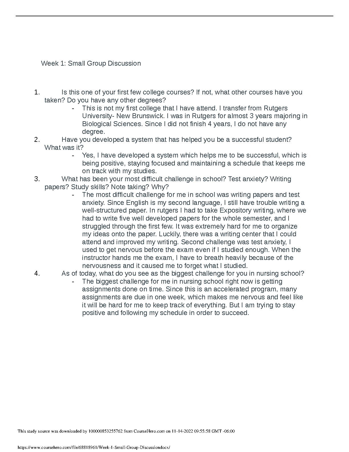 2025/2026 Nursing Student Success Guide: Week 1 Small Group Discussion on Acing Courses and Avoiding Resits