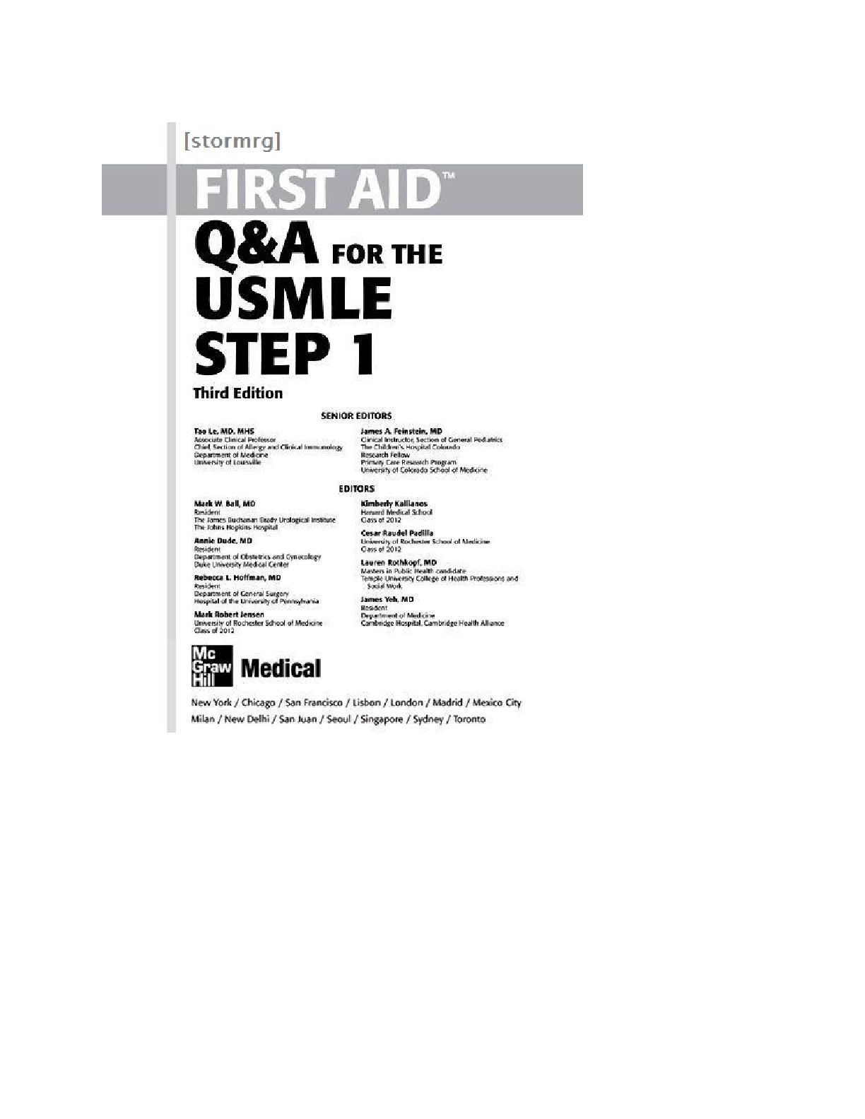 First Aid Q&A for the USMLE Step 1, 3rd Edition by Tao Le, Seth K. Bechis | Test Bank