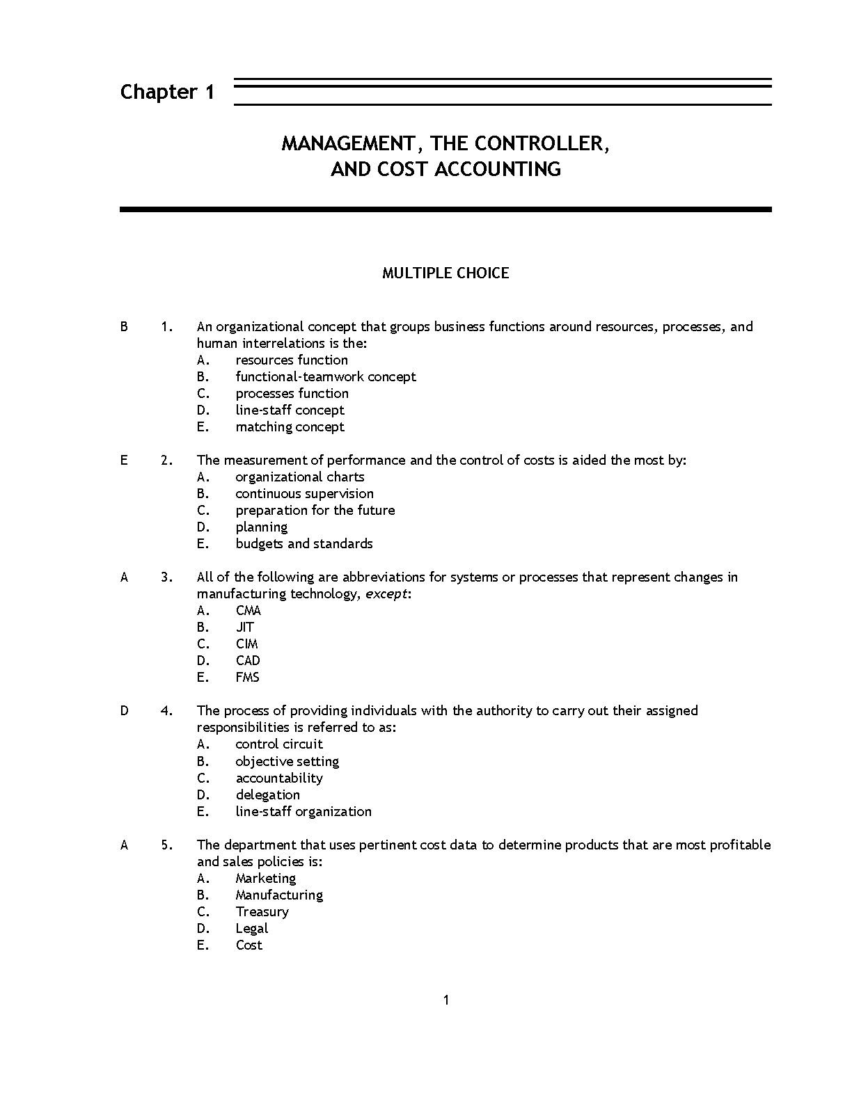 Gain a competitive edge with the official Test Bank for Chapter 1 of 'Cost Accounting: A Managerial Emphasis, 15th Edition' by Charles T. Horngren, Srikant M. Datar, and Madhav V. Rajan. This resource features a full range of multiple-choice questions, complete with accurate answers, designed to test your understanding of core concepts in management and cost accounting. It is the perfect tool for students looking to excel in their exams, offering practice questions that mirror the format and difficulty of actual tests. Master the material and boost your grades with this indispensable study aid.