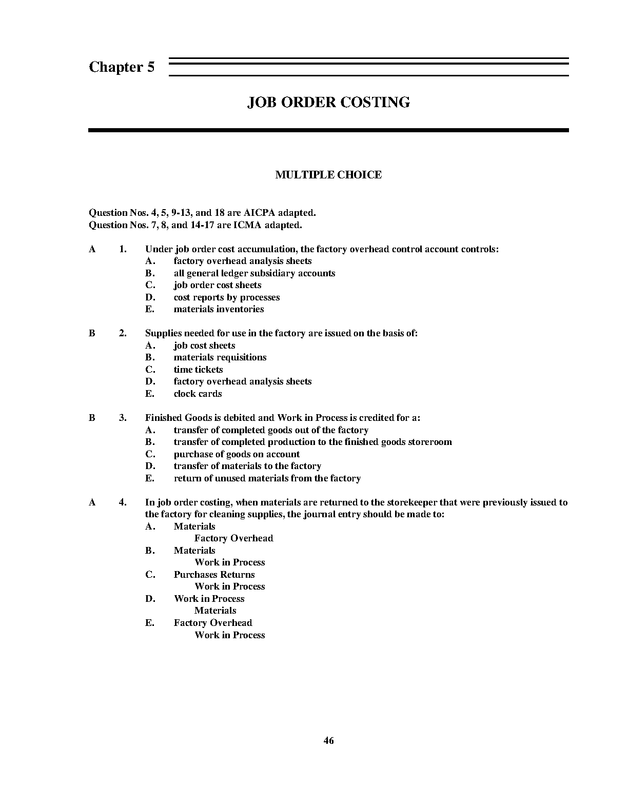 Cost Accounting, 14th Edition by William K. Carter - Chapter 5 Job Order Costing Test Bank with Answers