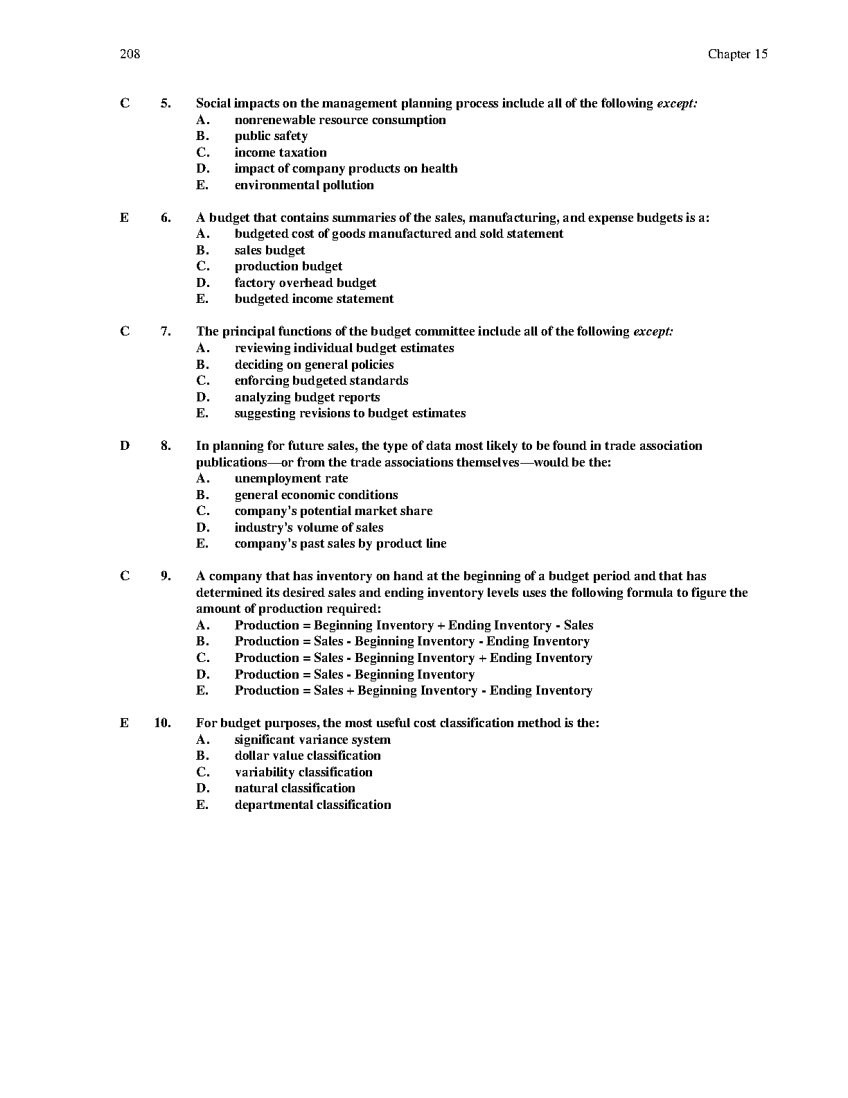 Comprehensive Test Bank for Cost Accounting: A Managerial Emphasis, 15th Edition by Charles T. Horngren, Srikant M. Datar, & Madhav V. Rajan | Chapter 15: Budgeting