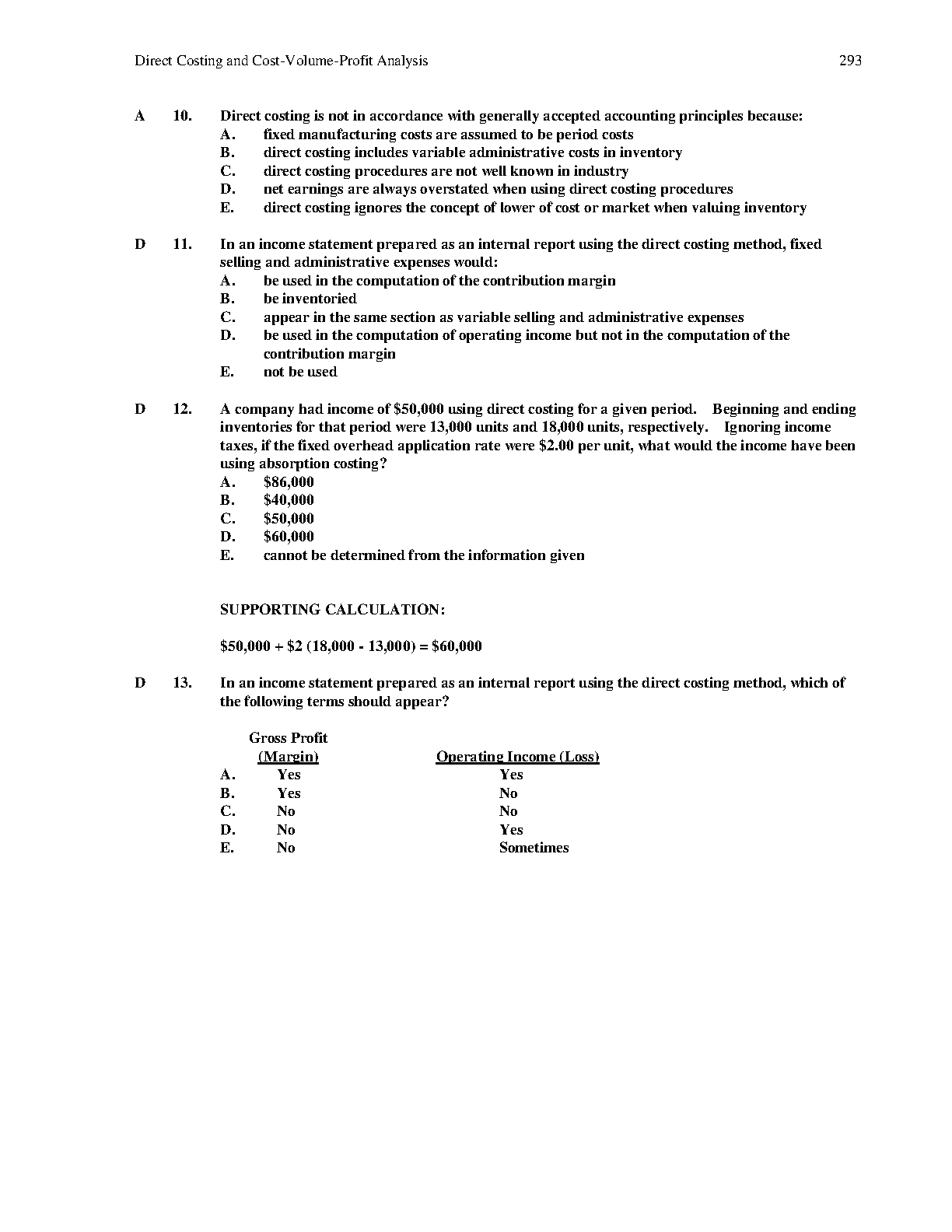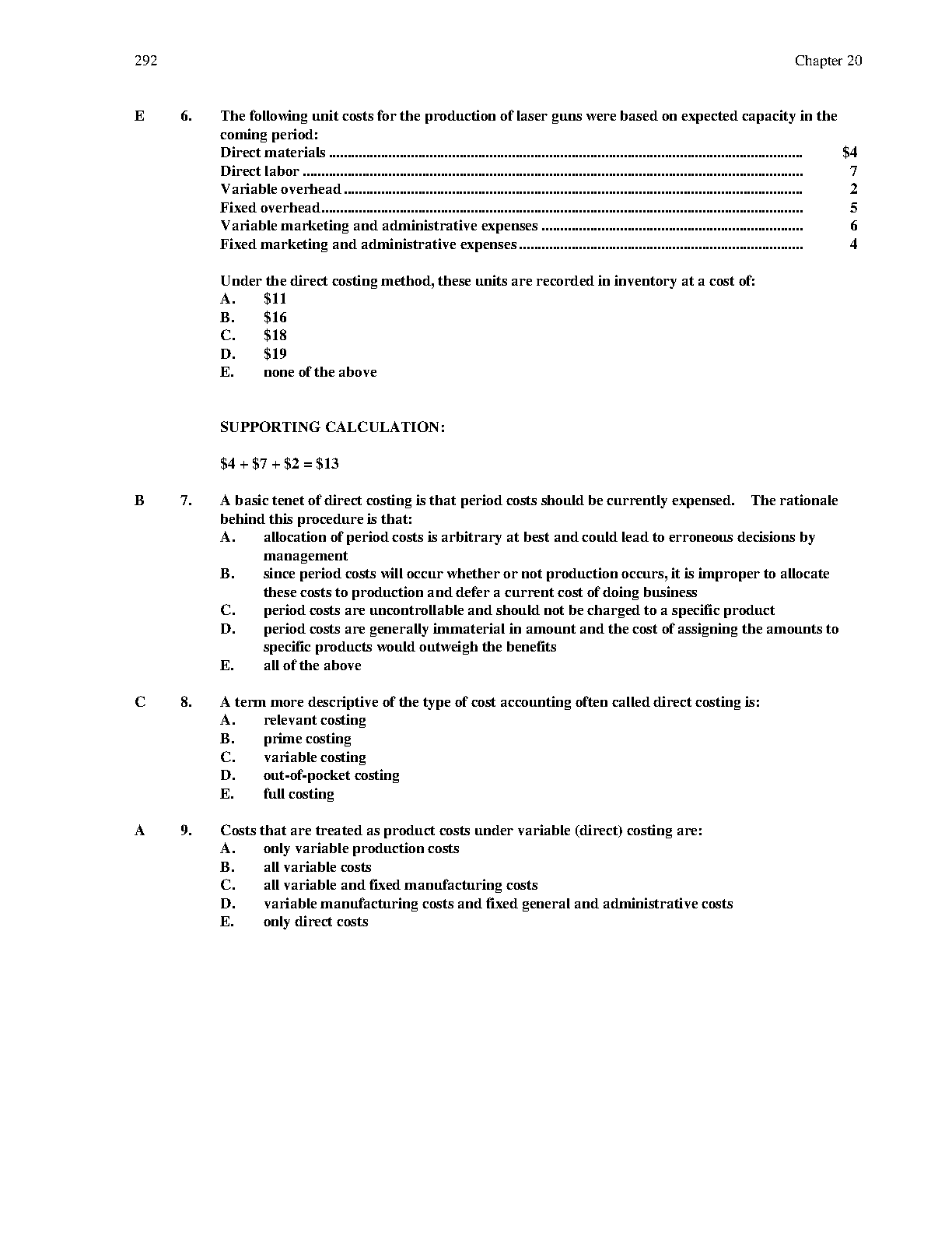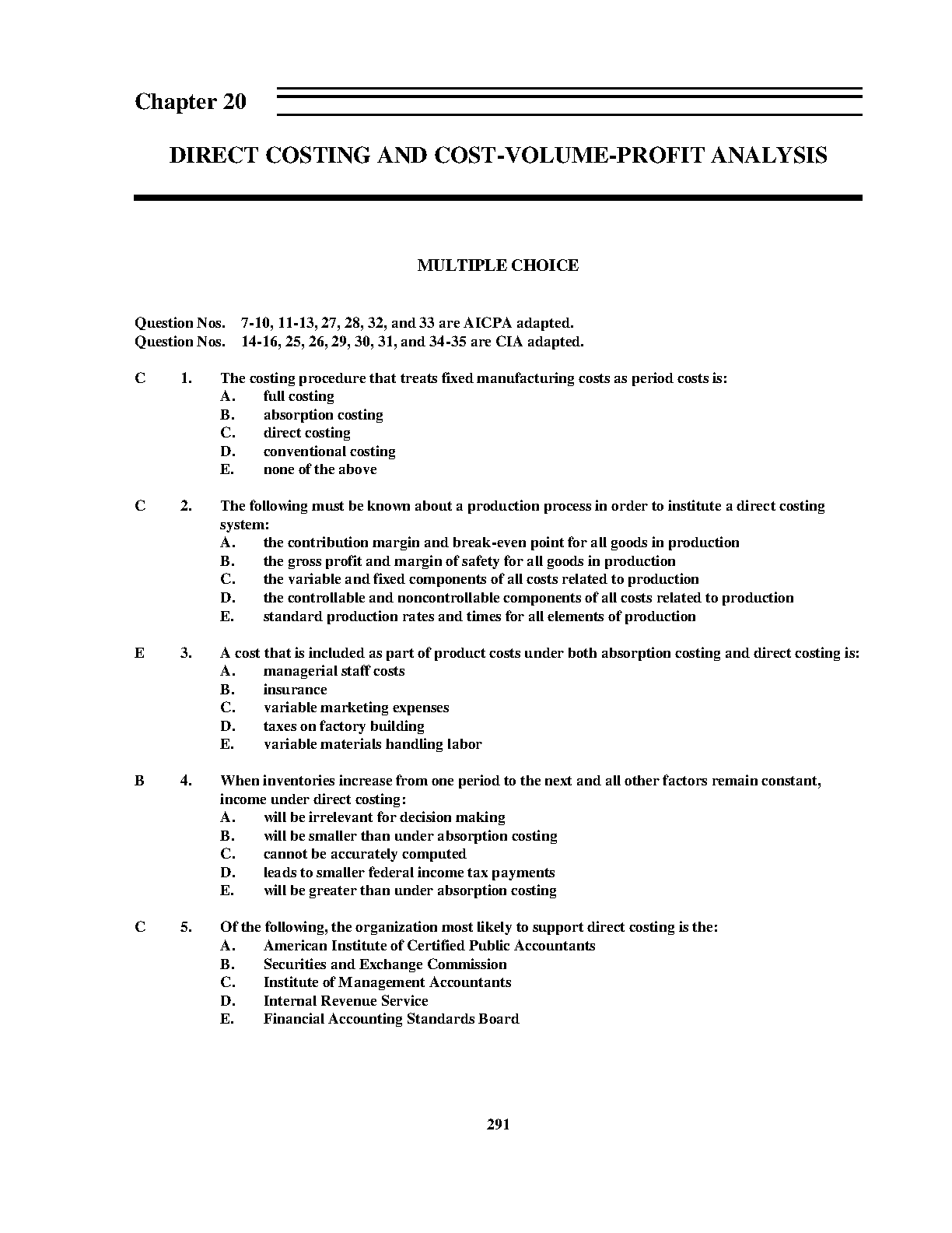 Unlock your potential with the official Test Bank for Chapter 20 of 'Cost Accounting: Planning and Control, 9th Edition.' This essential study guide features a comprehensive collection of multiple-choice questions with verified answers, focusing on Direct Costing and Cost-Volume-Profit (CVP) Analysis. Master key concepts such as contribution margin, break-even points, and the critical differences between direct and absorption costing. Ideal for exam preparation, this resource is designed to help you confidently tackle your accounting coursework and professional certifications like the AICPA.