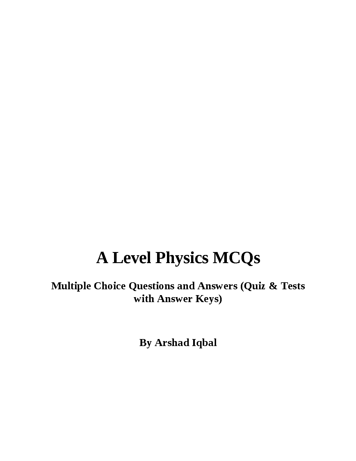 A Level Physics MCQs Test Bank by Arshad Iqbal | 2025/2026 Edition for First-Attempt Exam Success