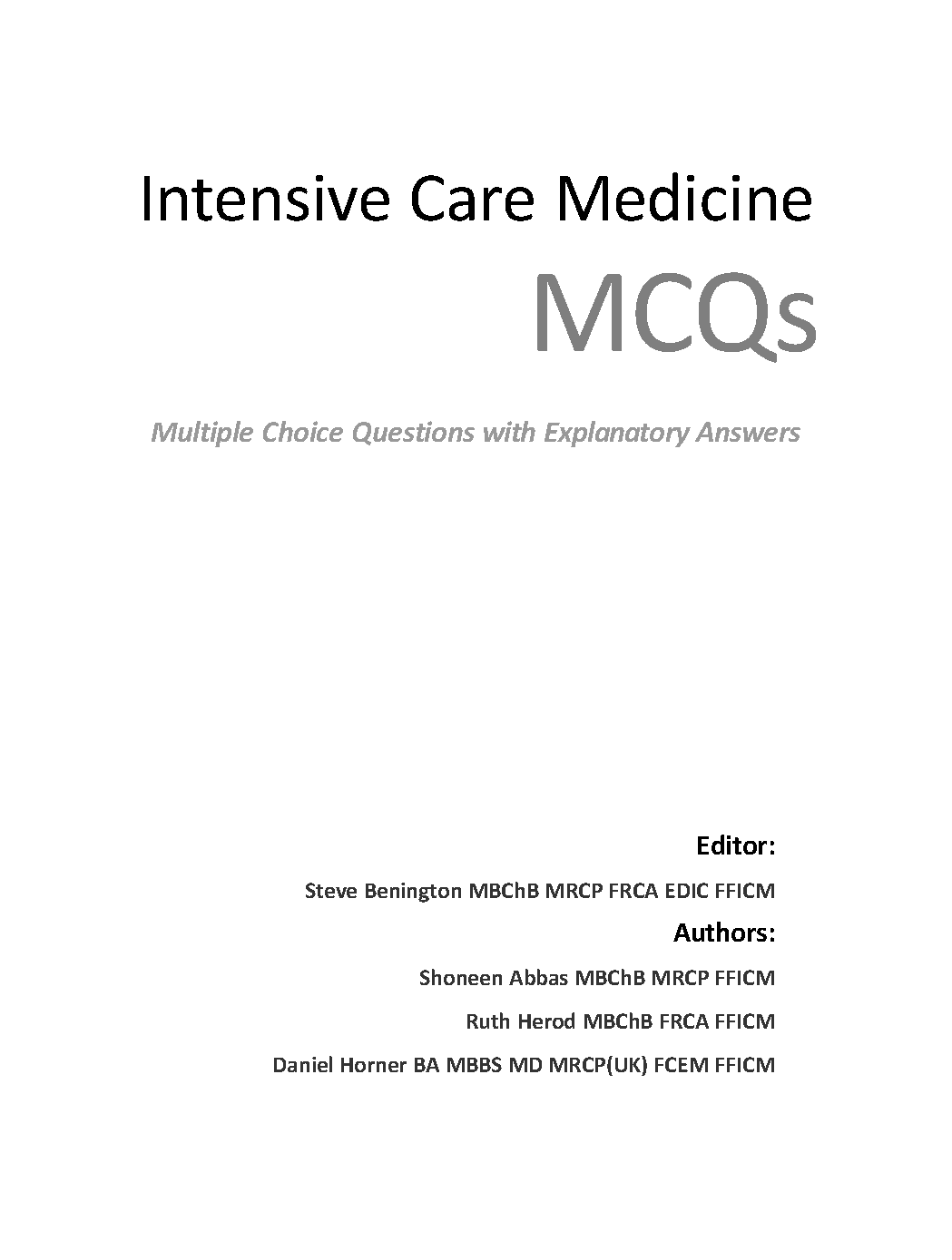 Test Bank for Intensive Care Medicine MCQs, 1st Edition by Steve Benington, Shoneen Abbas, Ruth Herod, and Daniel Horner