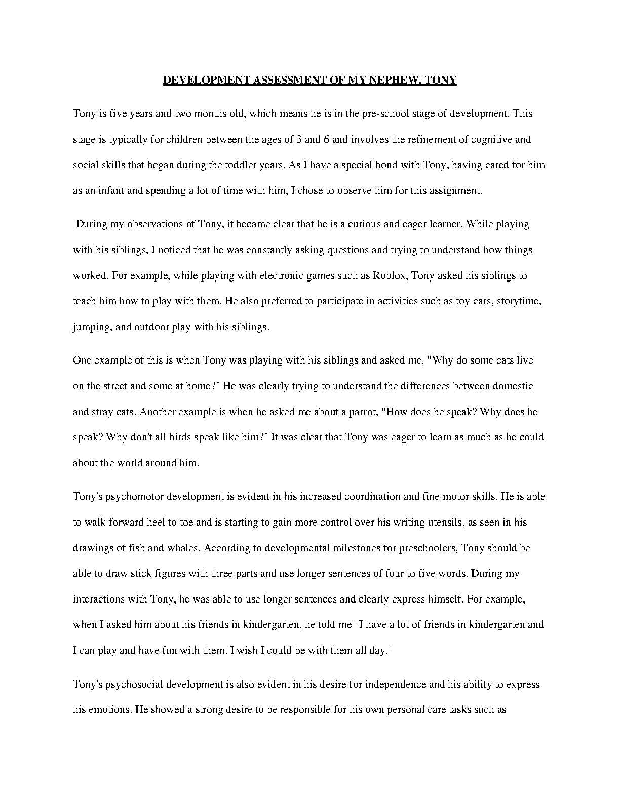 Unlock an A+ grade with this brand new 2025/2026 case study, meticulously designed to help you ace your child development exams on the first attempt. This resource provides an in-depth developmental assessment of a five-year-old child, covering the crucial preschool stage. Explore detailed observations on cognitive curiosity, social skill refinement, psychomotor coordination, and psychosocial independence. Ideal for students in nursing, psychology, and early childhood education, this guide offers a perfect template for structuring high-scoring assignments and applying theoretical knowledge to practical scenarios. Avoid resits and master the subject with this essential study tool.