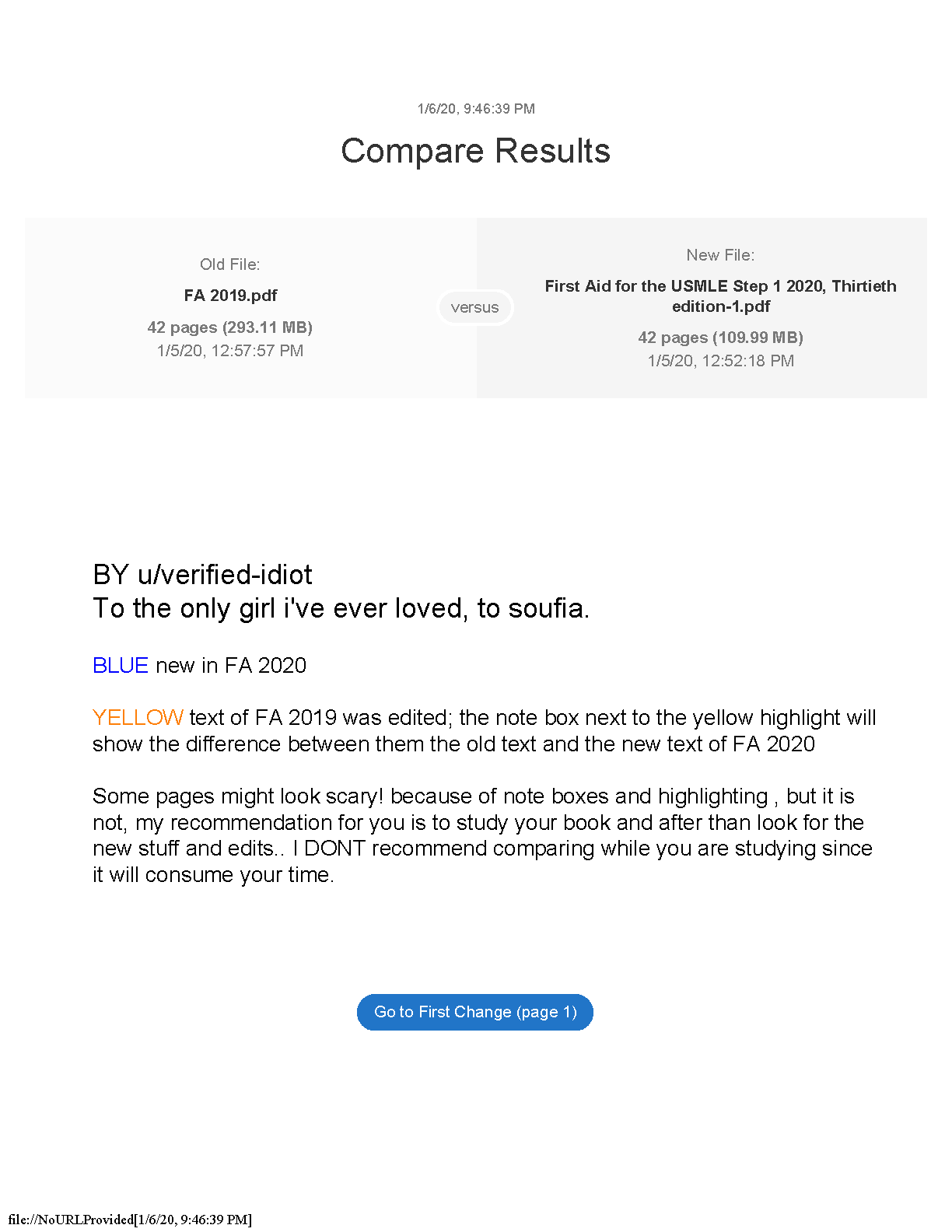 Master the latest updates for your exam with this indispensable guide comparing the 2020 (30th Edition) and 2019 editions of First Aid for the USMLE Step 1. This meticulously prepared document highlights all critical changes, with new content marked in blue and edited text in yellow. Streamline your study process by focusing only on the most current information. This resource is expertly designed for the 2025/2026 academic year to help you ace the USMLE Step 1 on your first attempt and avoid costly resits. Stop wasting time comparing texts and start studying smarter today!