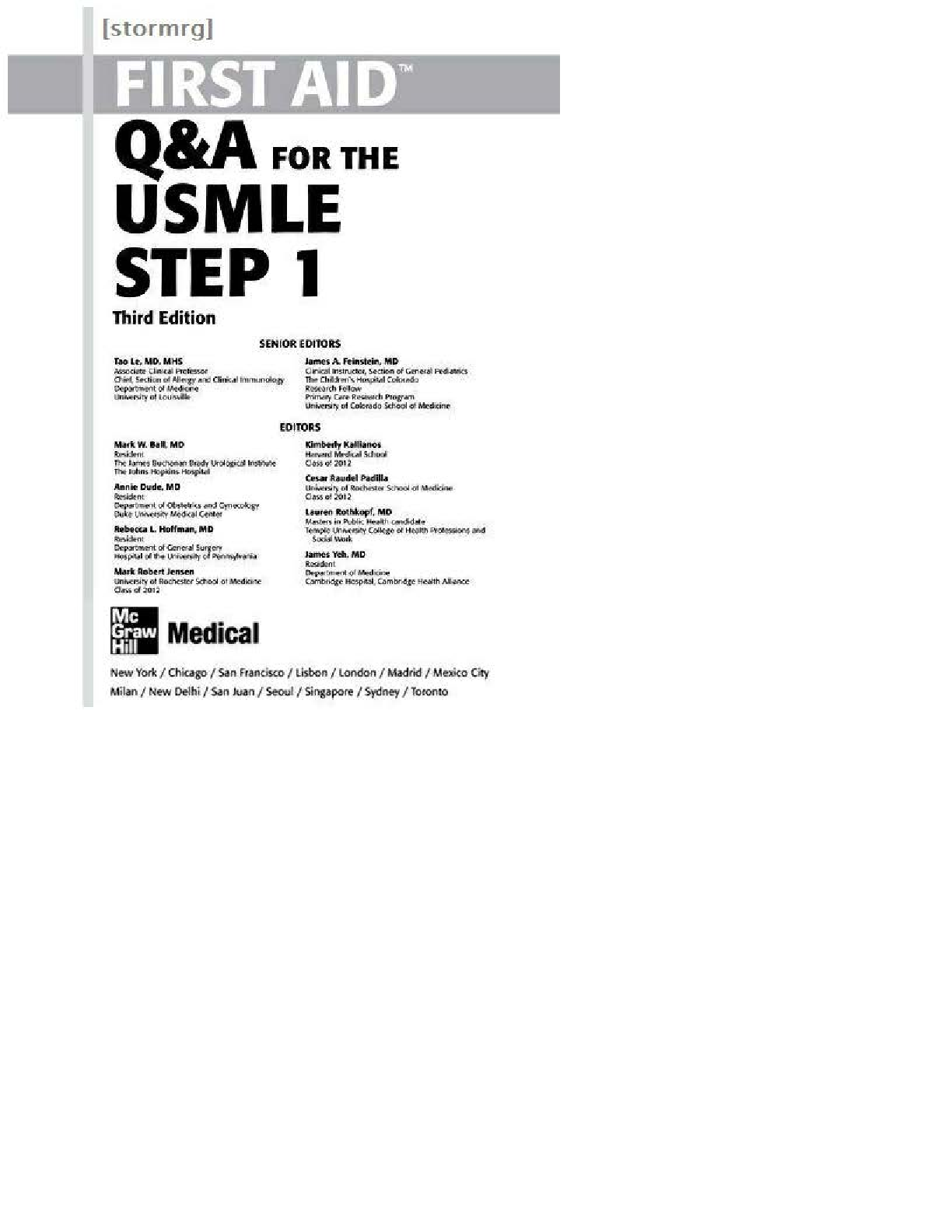 First Aid Q&A for the USMLE Step 1, 3rd Edition by Tao Le & Seth K. Bechis - Complete Test Bank with 1000 Questions