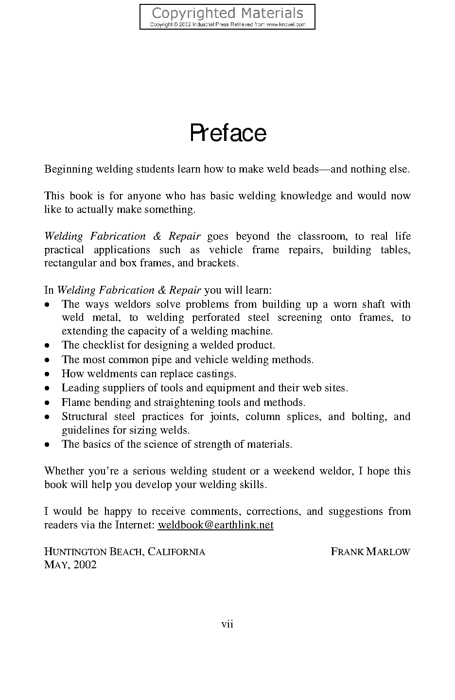 Test Bank for Welding Fabrication & Repair: Questions and Answers, 1st Edition by Frank M. Marlow