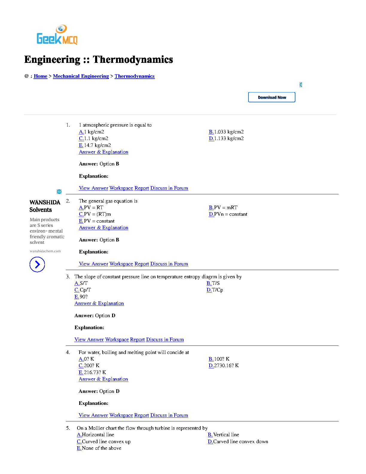 Master the core principles of Engineering Thermodynamics with our latest 2025/2026 test bank. This comprehensive resource is packed with hundreds of multiple-choice questions (MCQs), complete with detailed answers and explanations, covering all essential topics. From the general gas equation and entropy to Mollier charts and pressure concepts, this test bank is your ultimate study partner. Designed for engineering students aiming to excel, it provides the practice needed to build confidence, ace your exams, and avoid resits. Download now and take the first step towards mastering thermodynamics!