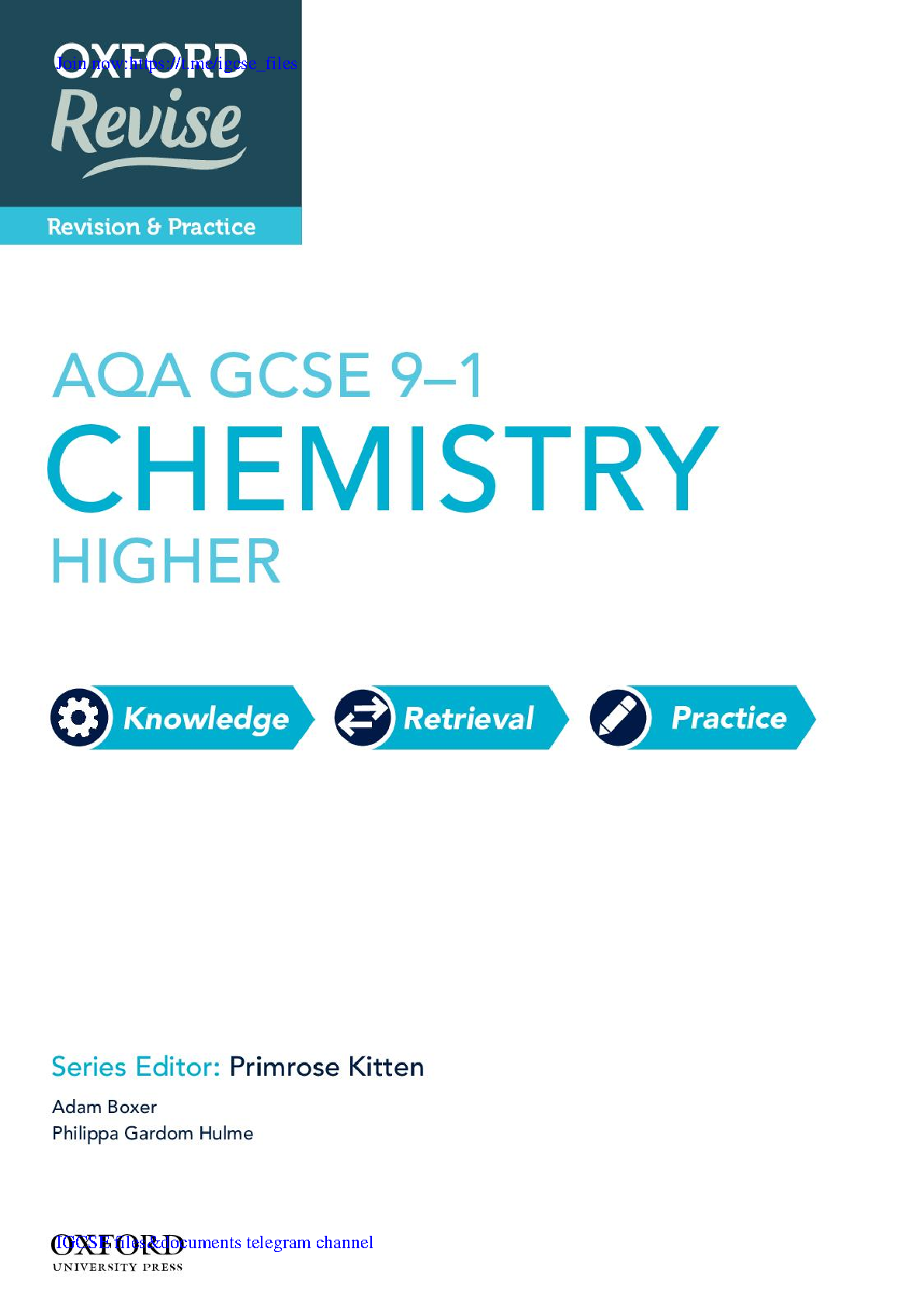 Ace your AQA GCSE 9-1 Higher Chemistry exams on the first try with the ultimate 2025/2026 revision and practice guide from Oxford. Authored by experts Adam Boxer and Philippa Gardom Hulme, and edited by Primrose Kitten, this resource is expertly structured to build your Knowledge, enhance your Retrieval skills, and provide extensive Practice. Say goodbye to resits by mastering the curriculum with this comprehensive guide, specifically designed to secure top grades. Download now and start your journey to exam success!