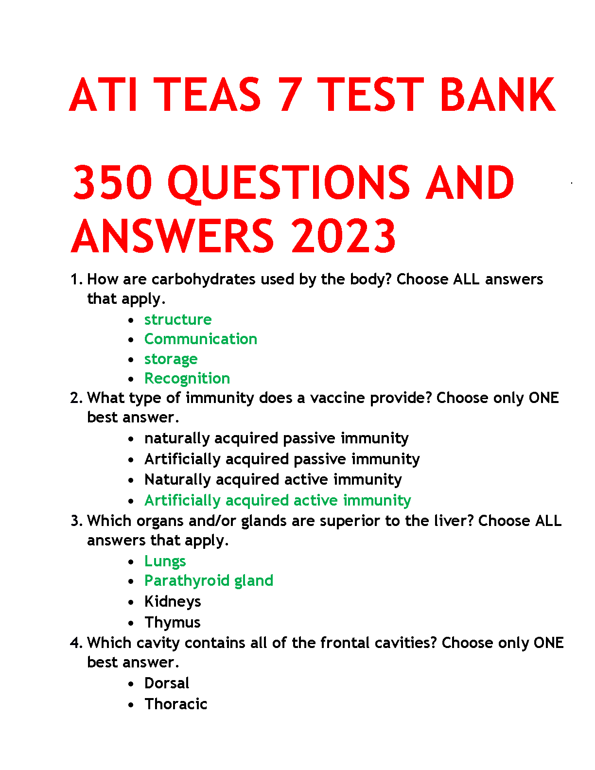 ATI TEAS Version 7 Test Bank by ATI Nursing Education - Over 350 Questions with Detailed Answers | Complete 2023 Study Guide