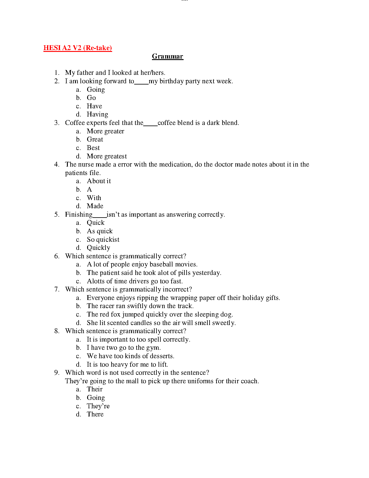 HESI A2 V2 Retake Exam 2025/2026: Ultimate Study Guide with Questions & Answers to Pass on Your Next Attempt