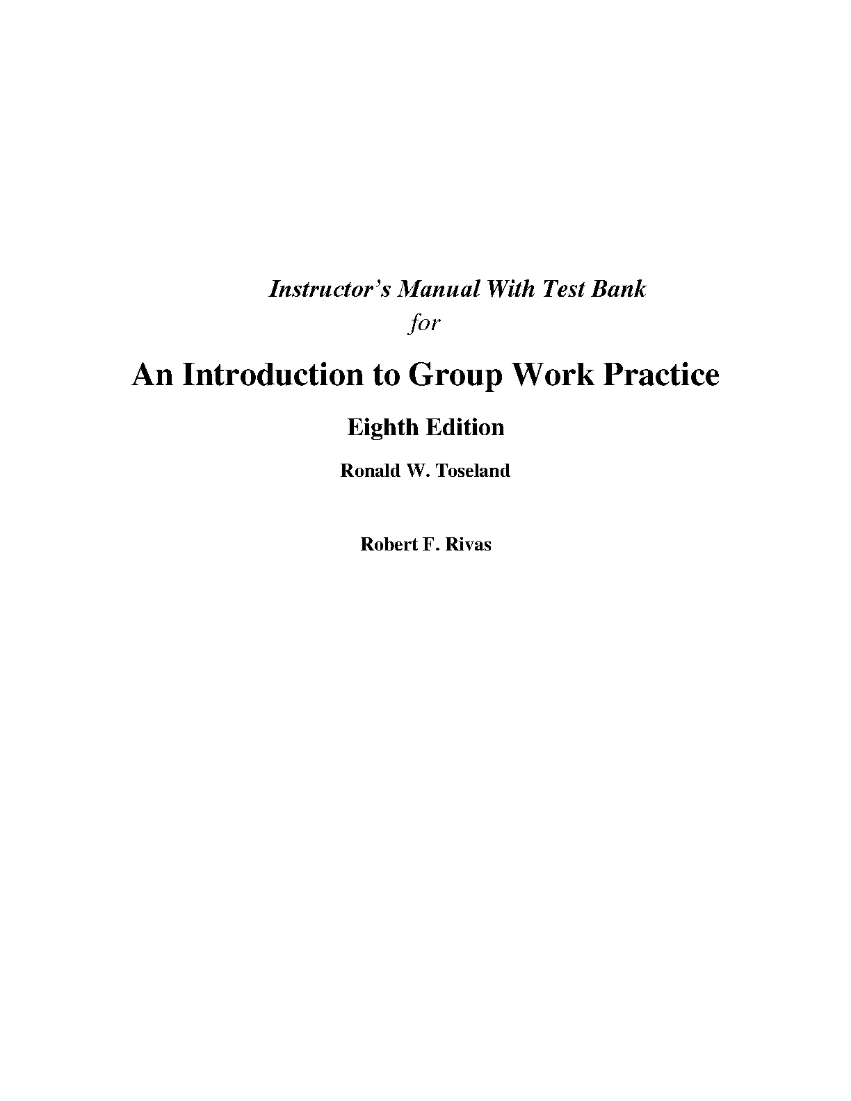 Instructor’s Manual With Test Bank for An Introduction to Group Work Practice Eighth Edition Ronald W. Toseland Robert F. Rivas