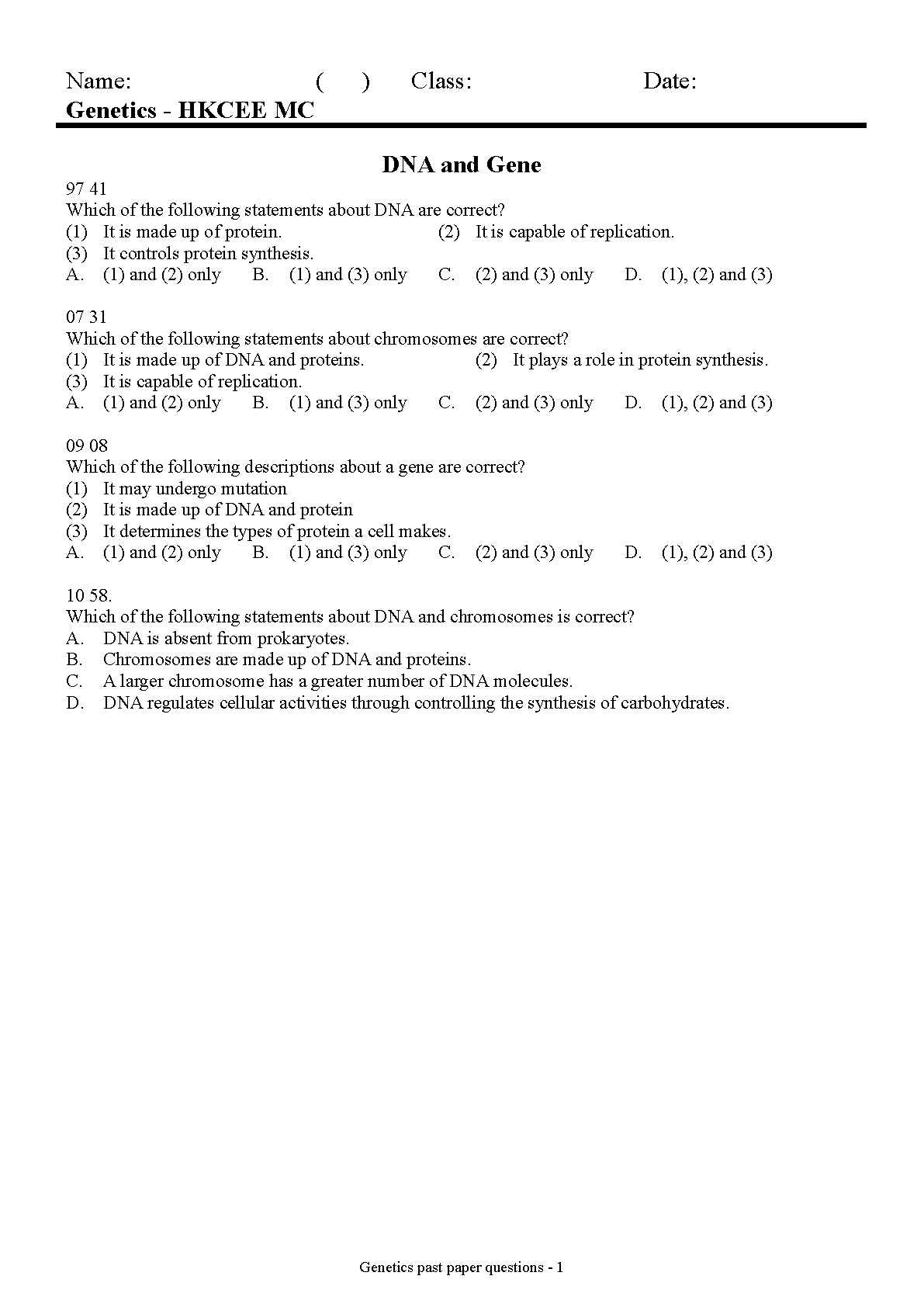 Ultimate Genetics Study Guide 2025/2026: Complete HKCEE Past MCQs on DNA & Genes for A-Level Exam Success