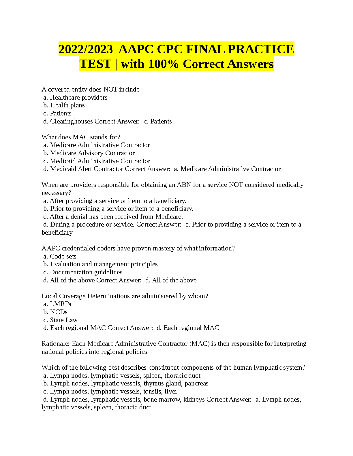 AAPC CPC Final Exam 2025/2026 Test Bank: Practice Questions & Verified Answers for First-Time Pass Success