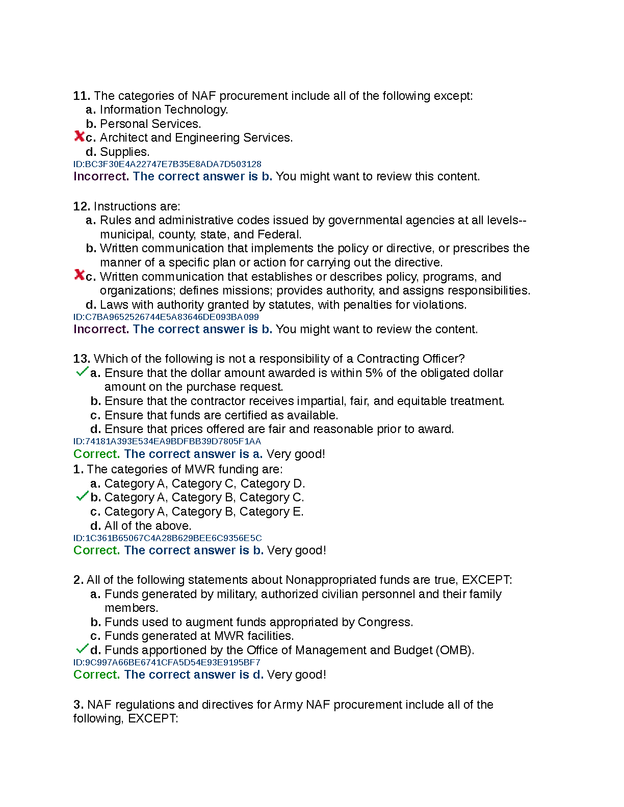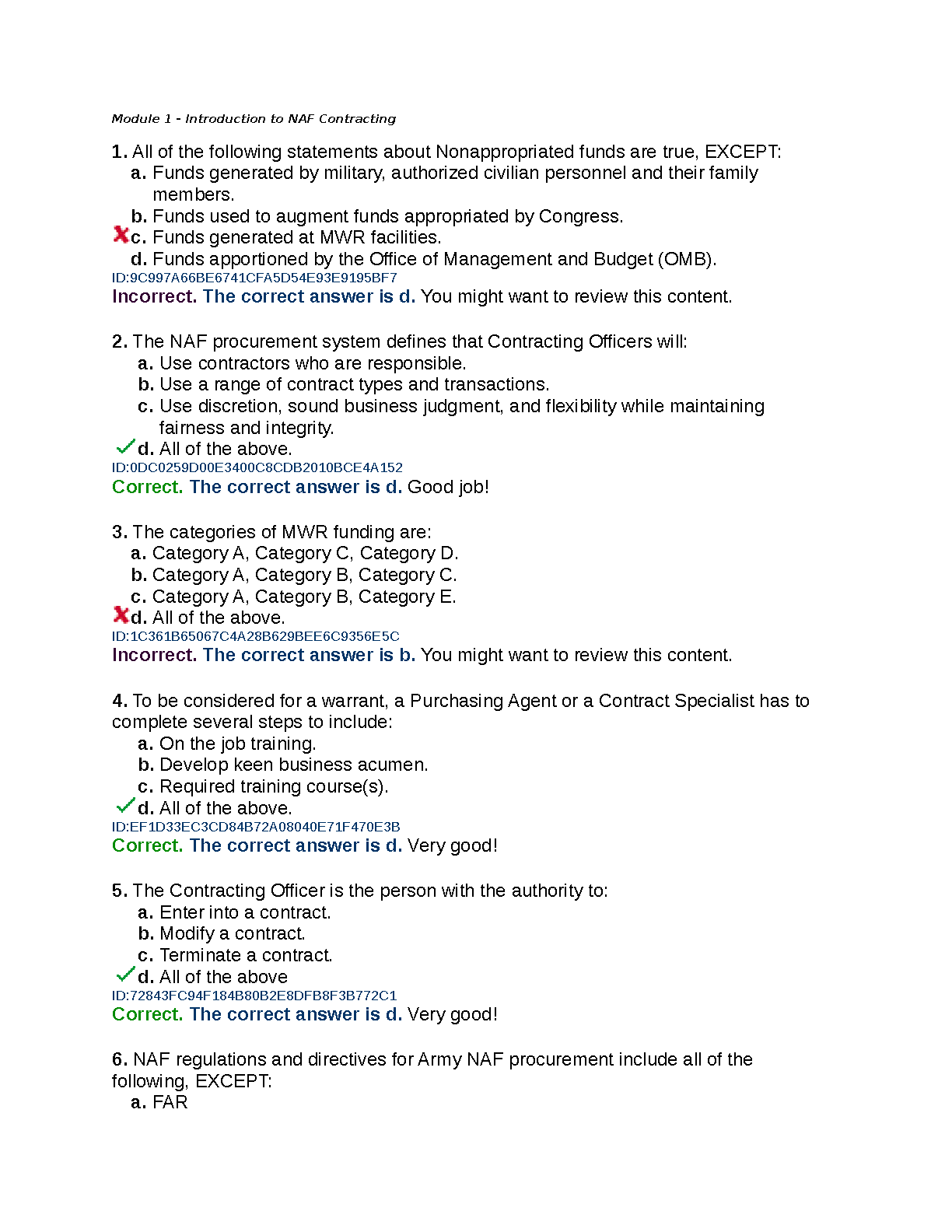 Prepare to excel in your 'Introduction to NAF Contracting' course with our definitive Module 1 Test Bank, fully updated for the 2025/2026 academic year. This essential study guide provides a complete set of exam-style questions with verified answers, covering all critical topics from the first module. Master the fundamentals of Nonappropriated Fund (NAF) procurement, understand the roles of a Contracting Officer, and grasp the nuances of MWR funding. Each question is designed to mirror the actual exam, ensuring you are thoroughly prepared to pass on your first attempt and avoid resits.