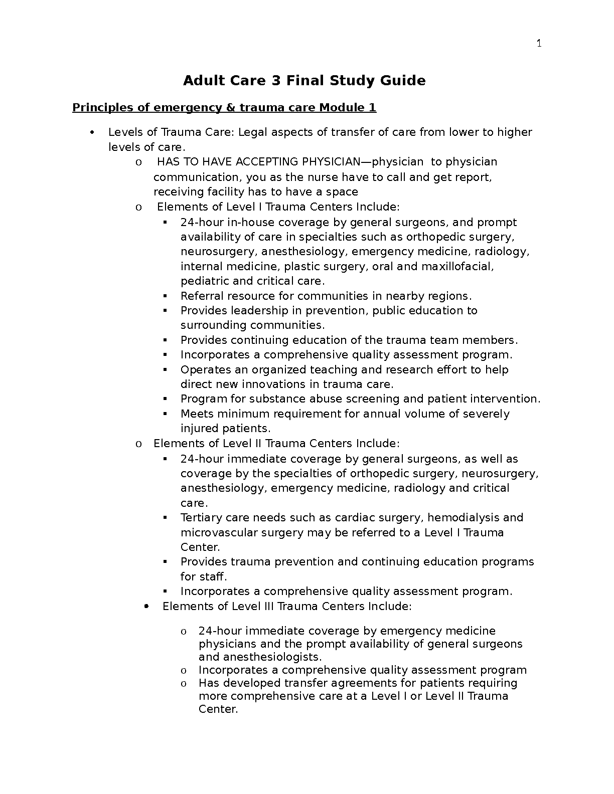 Unlock success in your Adult Care 3 course with this comprehensive final study guide, updated for the 2025/2026 academic year. This resource is expertly crafted to help you master the 'Principles of Emergency & Trauma Care' and pass your exams on the first attempt, eliminating the need for resits. Dive deep into crucial topics, including the different levels of Trauma Centers (I, II, and III), their specific elements, staffing requirements, and patient care capabilities. Gain a clear understanding of the legal aspects of patient transfers and the vital role of nurses in communication and care coordination. Study smarter, not harder, with this essential guide to acing your final exam.