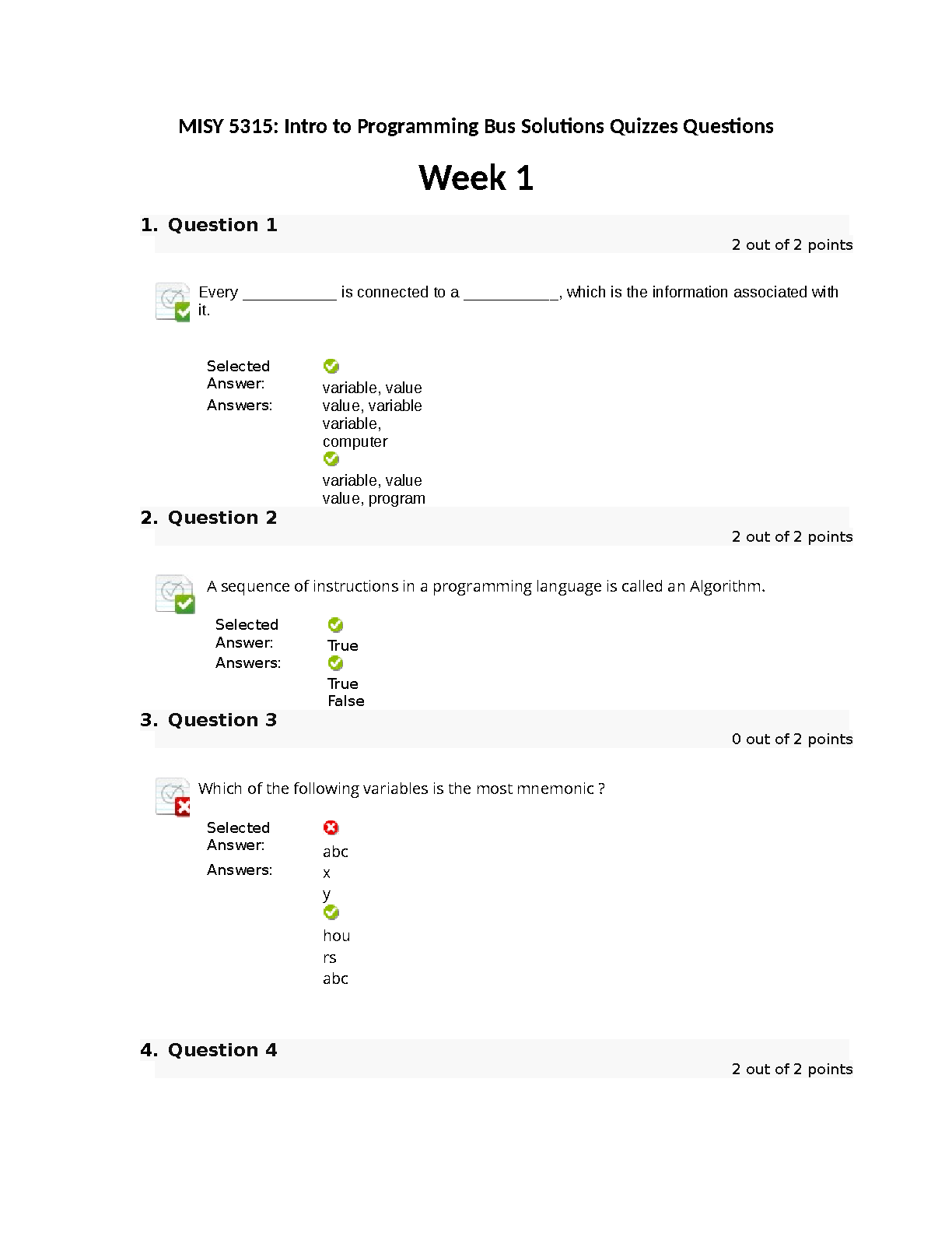 Test Bank for MISY 5315 Intro to Programming Bus Solutions: Week 1 Quiz | Latest 2025/2026 Verified Q&A