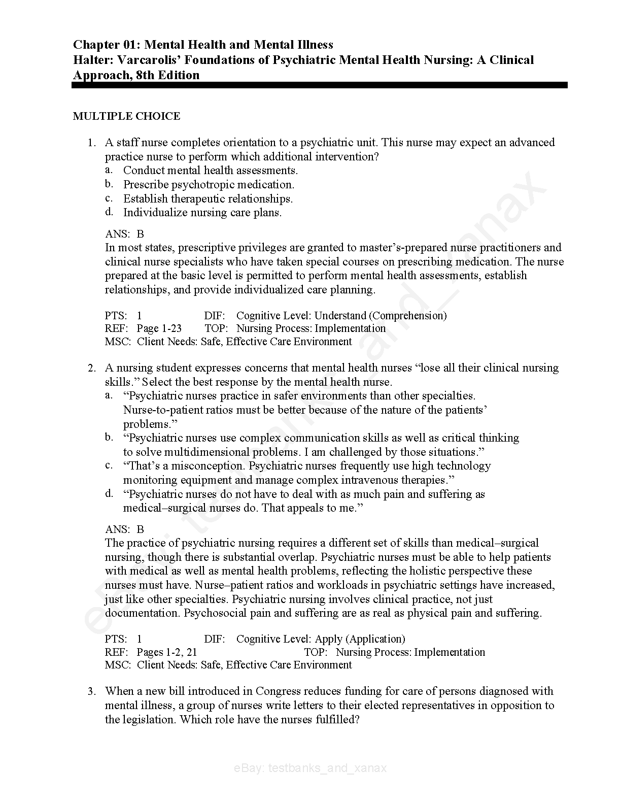 Test Bank for Varcarolis’ Foundations of Psychiatric Mental Health Nursing: A Clinical Approach, 8th Edition by Margaret Jordan Halter
