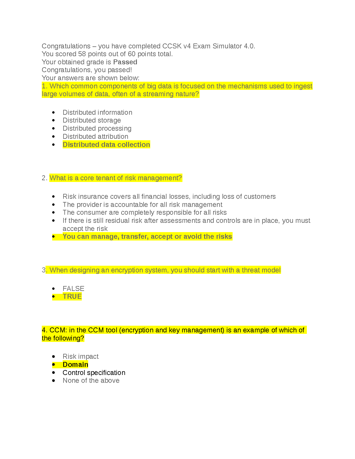 CCSK v4 Test Bank: Certificate of Cloud Security Knowledge (Cloud Security Alliance) - Exam Questions & Verified Answers