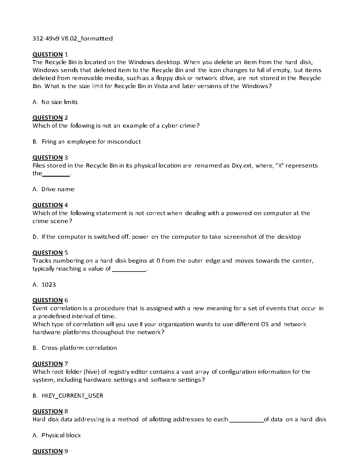 Prepare to ace your EC-Council Certified Hacking Forensic Investigator (CHFI) v9 exam with our comprehensive test bank for exam code 312-49. This essential study resource features a curated collection of real exam-style questions and verified answers, covering all critical domains of computer forensics. Dive deep into topics such as Windows file system forensics, Recycle Bin analysis, registry hives, cyber-crime investigation procedures, and hard disk data addressing. Master the concepts, build your confidence, and ensure you're fully prepared to pass the CHFI 312-49 certification on your first attempt.