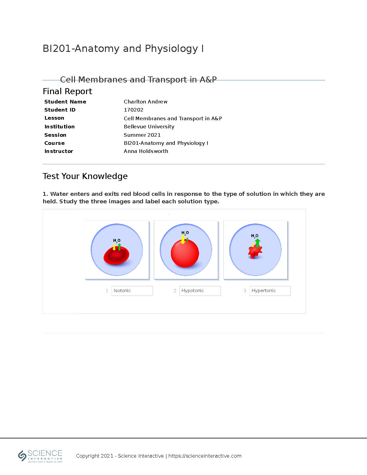 Struggling with cell transport in your Anatomy and Physiology course? This comprehensive study guide for BI201 is your key to success for the 2025/2026 academic year. This resource provides a detailed elaboration on the critical topic of Cell Membranes and Transport. It visually explains the effects of isotonic, hypotonic, and hypertonic solutions on red blood cells, a common exam question. Based on a final report from Bellevue University, this guide offers clear, concise, and accurate information to help you master the concepts and ace your exams on the first attempt. Avoid resits and build a strong foundation in A&P I with this essential study aid.
