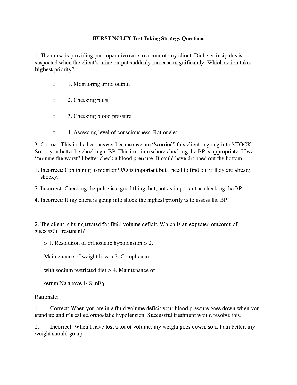 Unlock your full potential and ace the NCLEX on your first attempt with the latest 2025/2026 Hurst Review NCLEX Test Bank. This comprehensive resource, developed by Marlene Hurst, is packed with critical test-taking strategy questions designed to sharpen your clinical judgment. Each question comes with a detailed rationale, explaining the 'why' behind the correct and incorrect answers, helping you master complex topics like post-operative care, fluid and electrolyte balance, and patient prioritization. Stop memorizing and start understanding the core principles needed to pass. This is the ultimate study tool to build confidence and ensure your success.