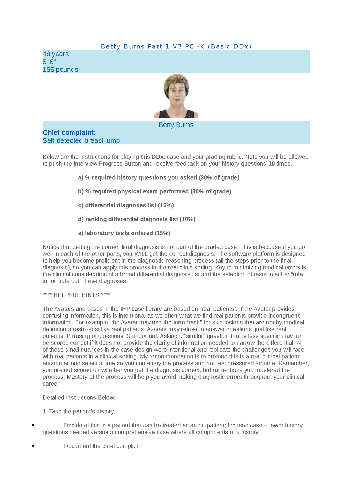iHuman Case Study: Betty Burns - Self-Detected Breast Lump (Part 1, Basic DDx) | New 2025/2026 Verified Solution for First-Attempt Success