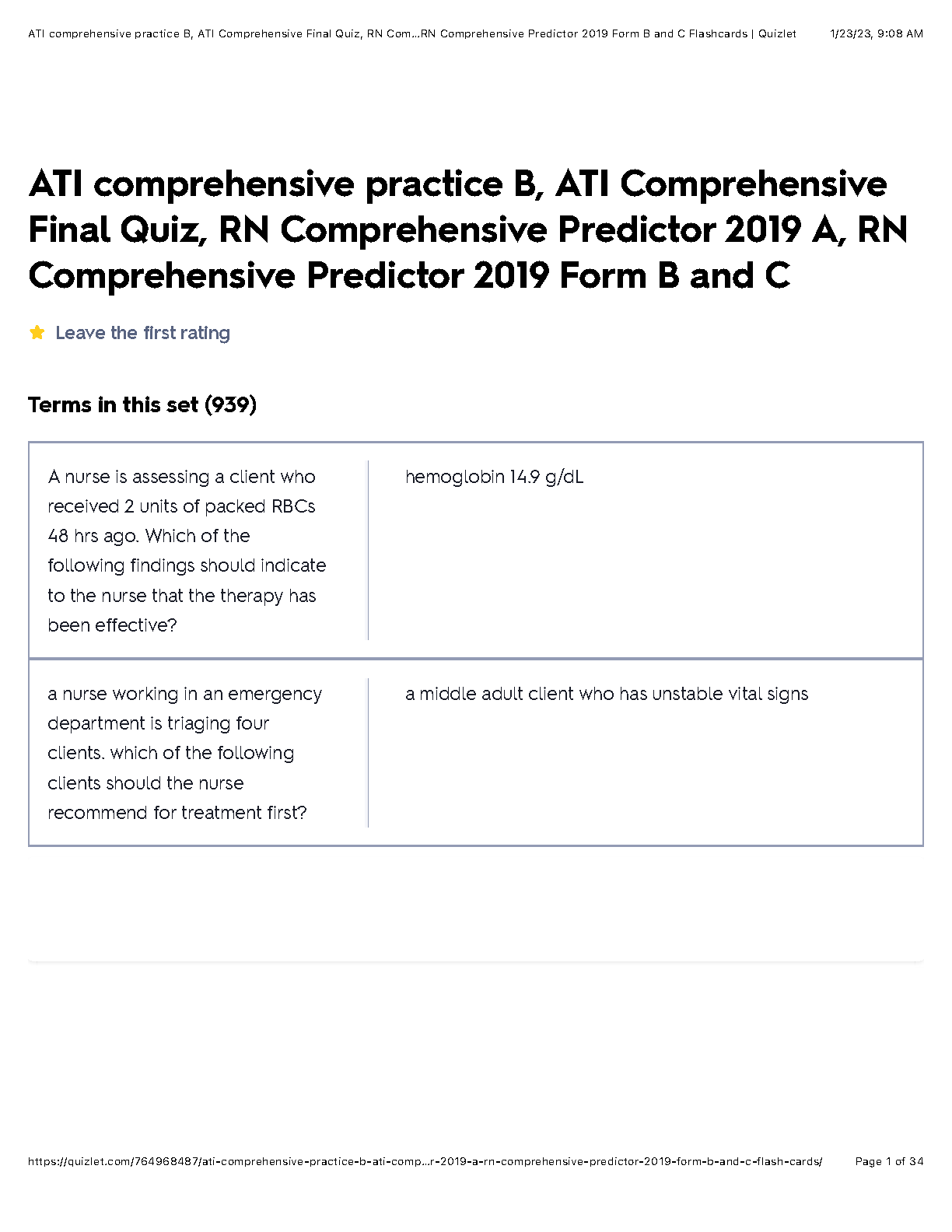 ATI RN Comprehensive Predictor 2019 (Forms A, B, C) Test Bank | Practice Questions & Verified Answers by ATI Nursing Education