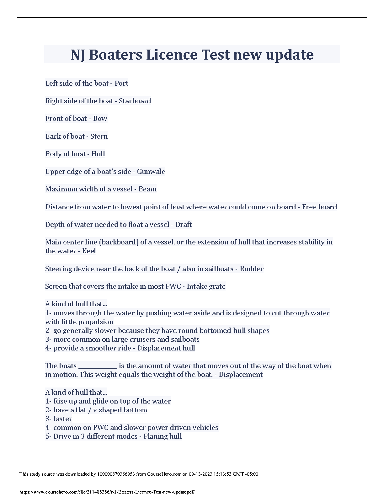 Ace your New Jersey Boaters Licence exam with our latest and most comprehensive study guide for the 2025/2026 season. This resource is expertly designed to help you pass on your first attempt, avoiding costly resits. It covers all essential terminology and concepts, including Port vs. Starboard, Bow, Stern, Hull types (Displacement and Planing), Draft, Keel, and more. With this guide, you'll master the knowledge needed to confidently answer every question and earn your NJ Boat Safety Certificate. Download now for the ultimate preparation tool!
