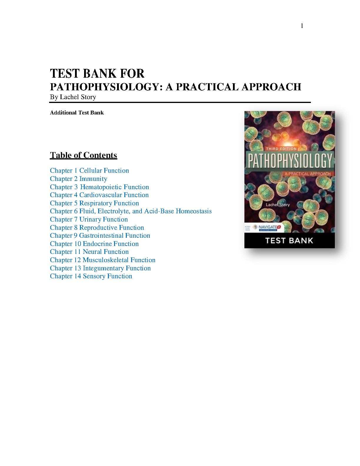 Test Bank for Pathophysiology: A Practical Approach, 3rd Edition by Lachel Story | Complete Questions & Answers