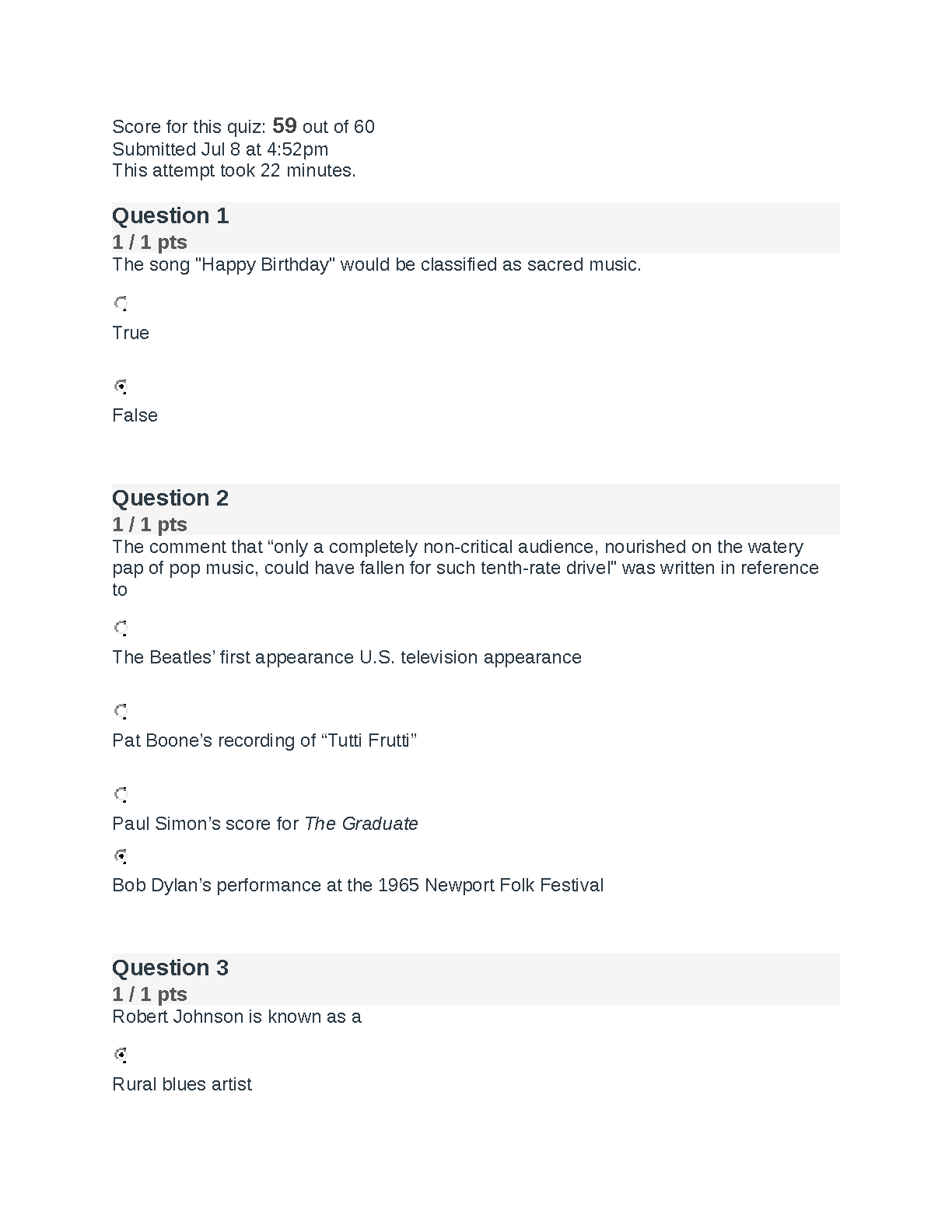 Master your Music Appreciation course with the official Test Bank for 'The Enjoyment of Music,' 14th Edition, authored by Kristine Forney and Andrew Dell'Antonio. This comprehensive resource provides a complete collection of exam questions and verified answers, covering all key chapters and concepts. This file, showcasing a near-perfect score of 59/60, is your ultimate study tool to ace quizzes, midterms, and final exams. Elevate your understanding of music history, from blues artists like Robert Johnson to the cultural impact of The Beatles, and secure the top grades you deserve.