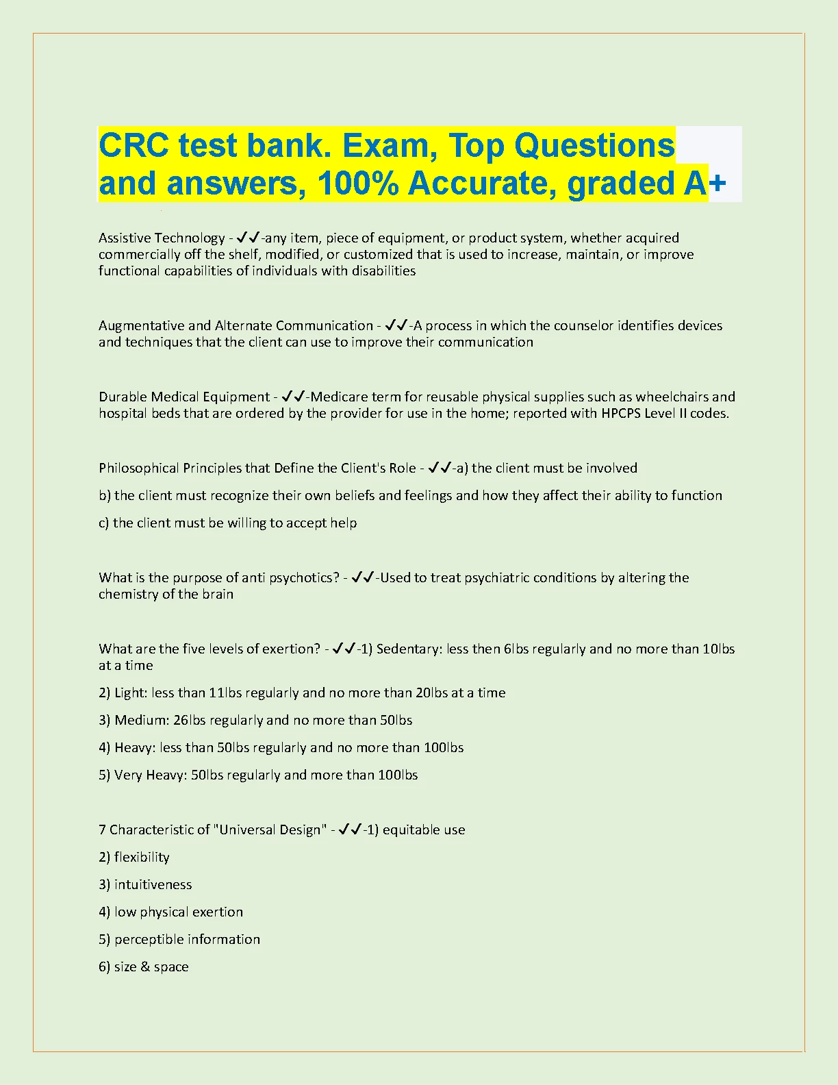 CRC TEST BANK. Exam, Top Questions and Answers, 100% Accurate, Graded A+ NEW SOLUTION . DOWNLOAD on www.hackedexams.com INSTANTLY.