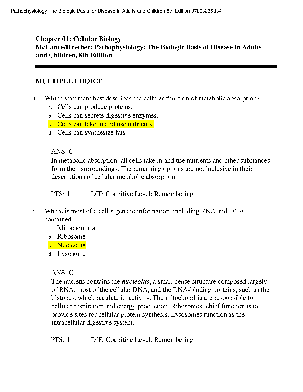 Test Bank for Pathophysiology: The Biologic Basis for Disease in Adults and Children, 8th Edition by Kathryn L. McCance and Sue E. Huether