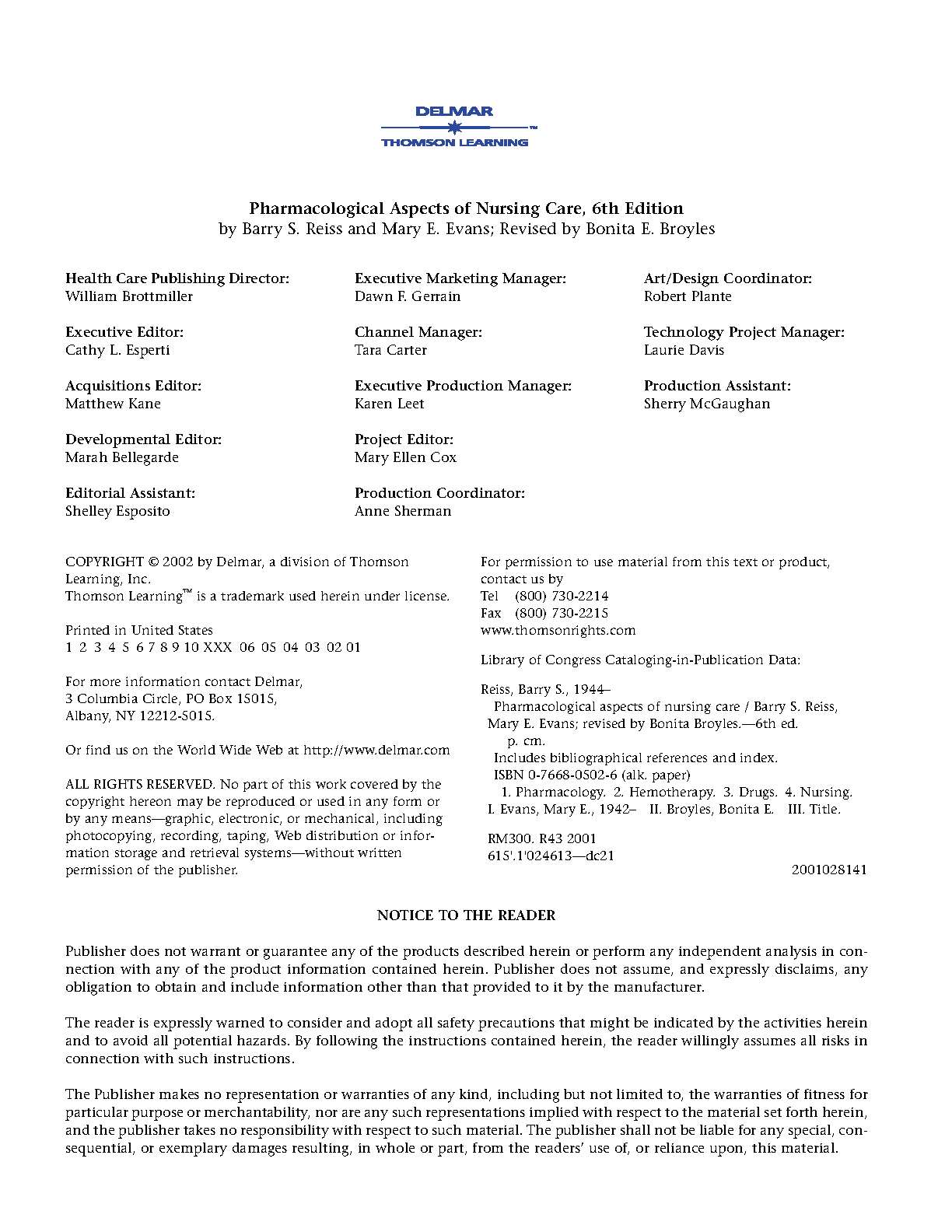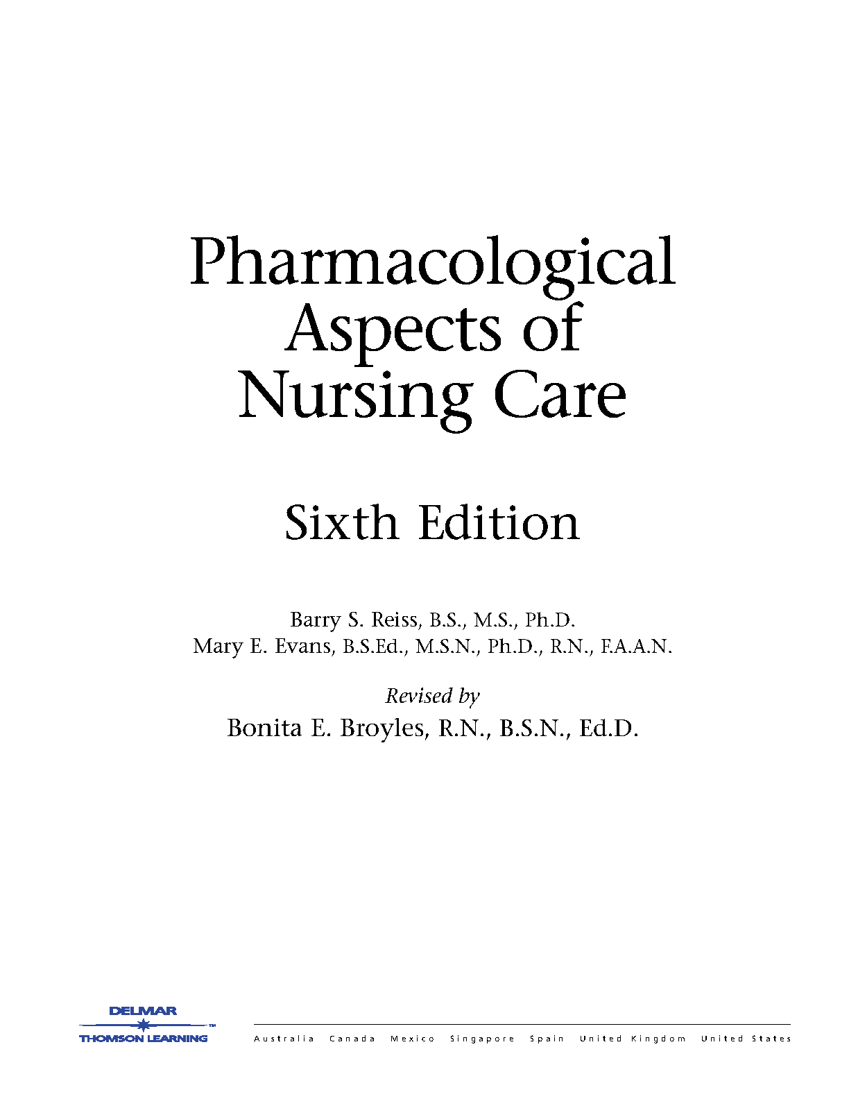 Test Bank for Pharmacological Aspects of Nursing Care, 6th Edition by Barry S. Reiss, Mary E. Evans, and Bonita E. Broyles