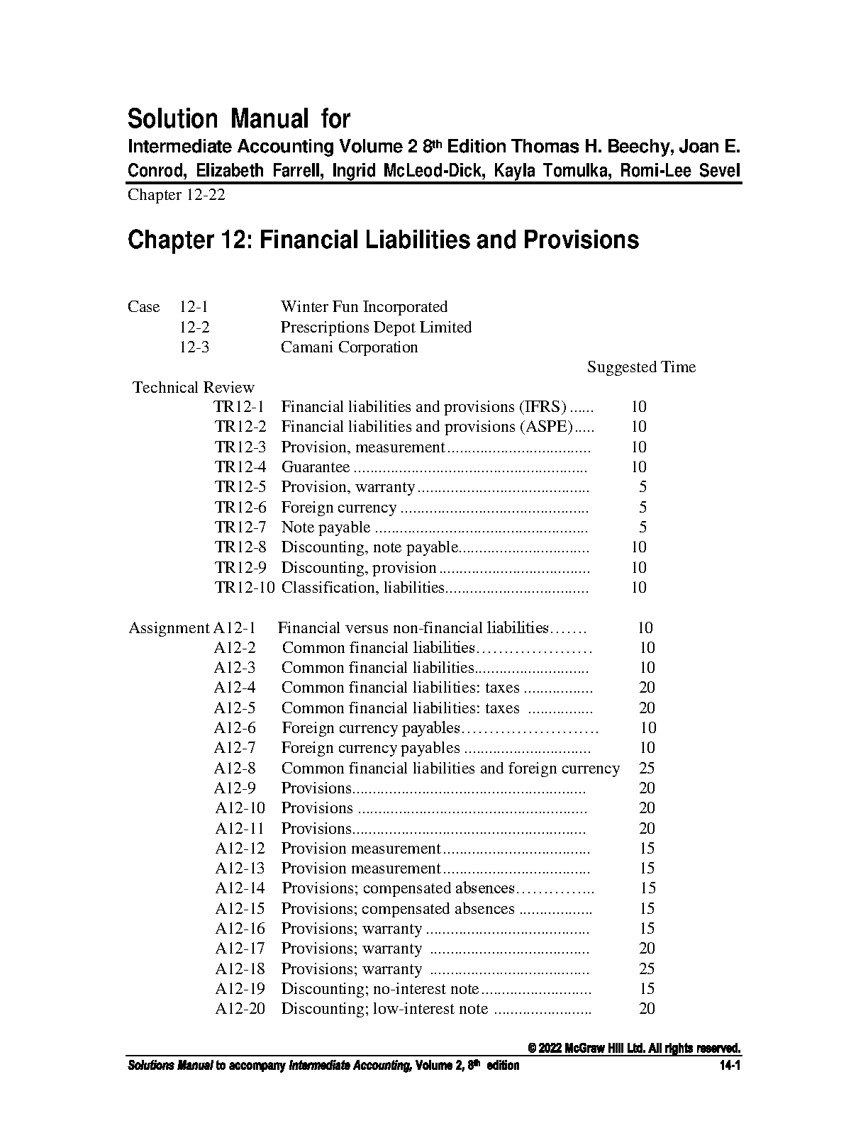 Master your accounting course with the official Solution Manual for Intermediate Accounting, Volume 2, 8th Edition. Authored by Beechy, Conrad, Farrell, and their team, this guide provides comprehensive, step-by-step solutions to all textbook problems and cases. It's an essential resource for students aiming to deeply understand concepts like financial liabilities and provisions, accurately complete assignments, and excel on exams. Get the verified answers you need to boost your confidence and your grades.