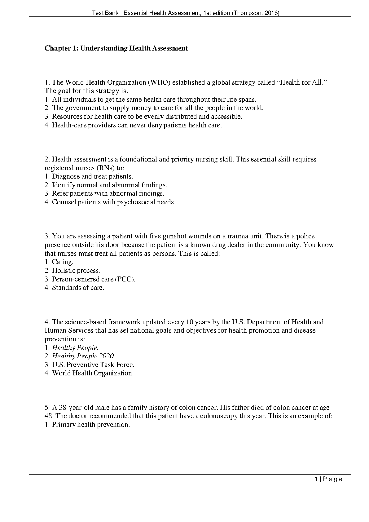 Test Bank for Essential Health Assessment, 1st Edition by Janice M. Thompson and Rosalyn A. Migliore