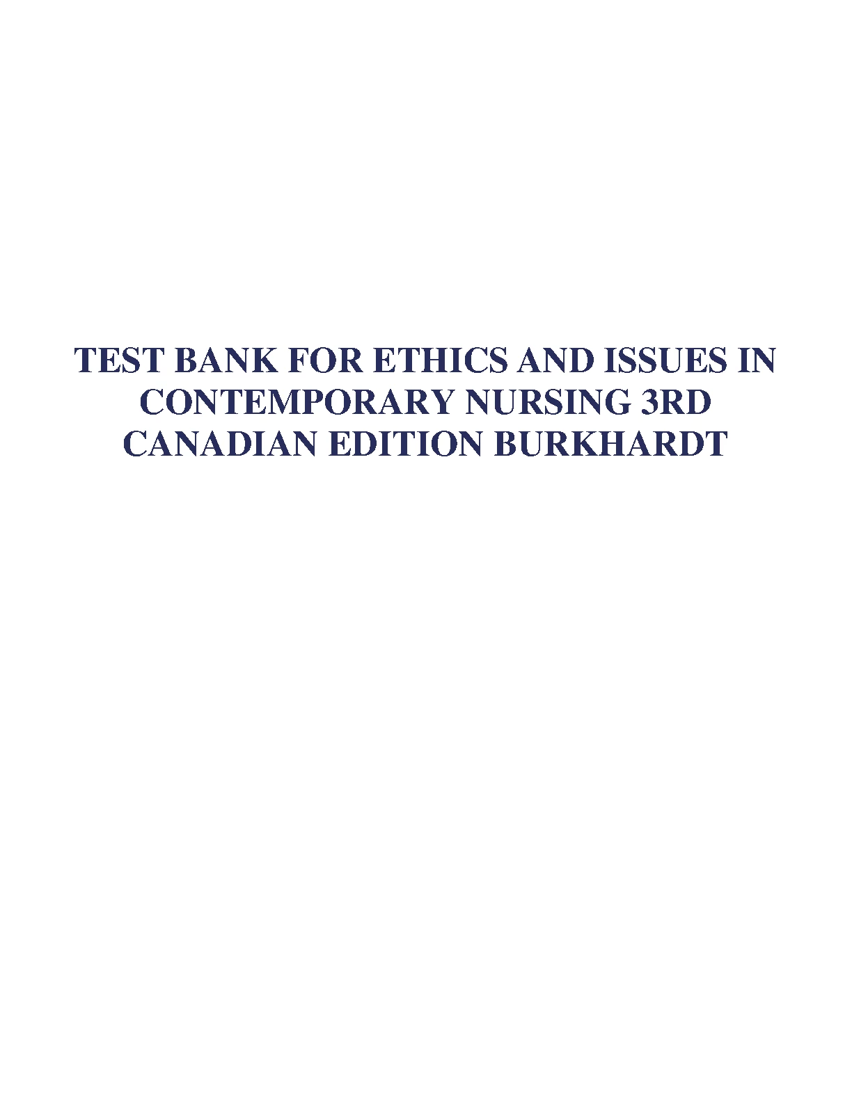 TEST BANK FOR ETHICS AND ISSUES IN CONTEMPORARY NURSING 3RD CANADIAN EDITION BURKHARDT. DOWNLOAD on www.hackedexams.com INSTANTLY.