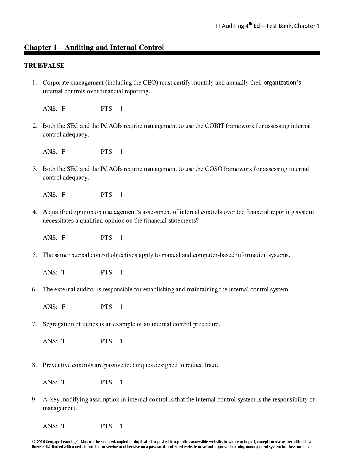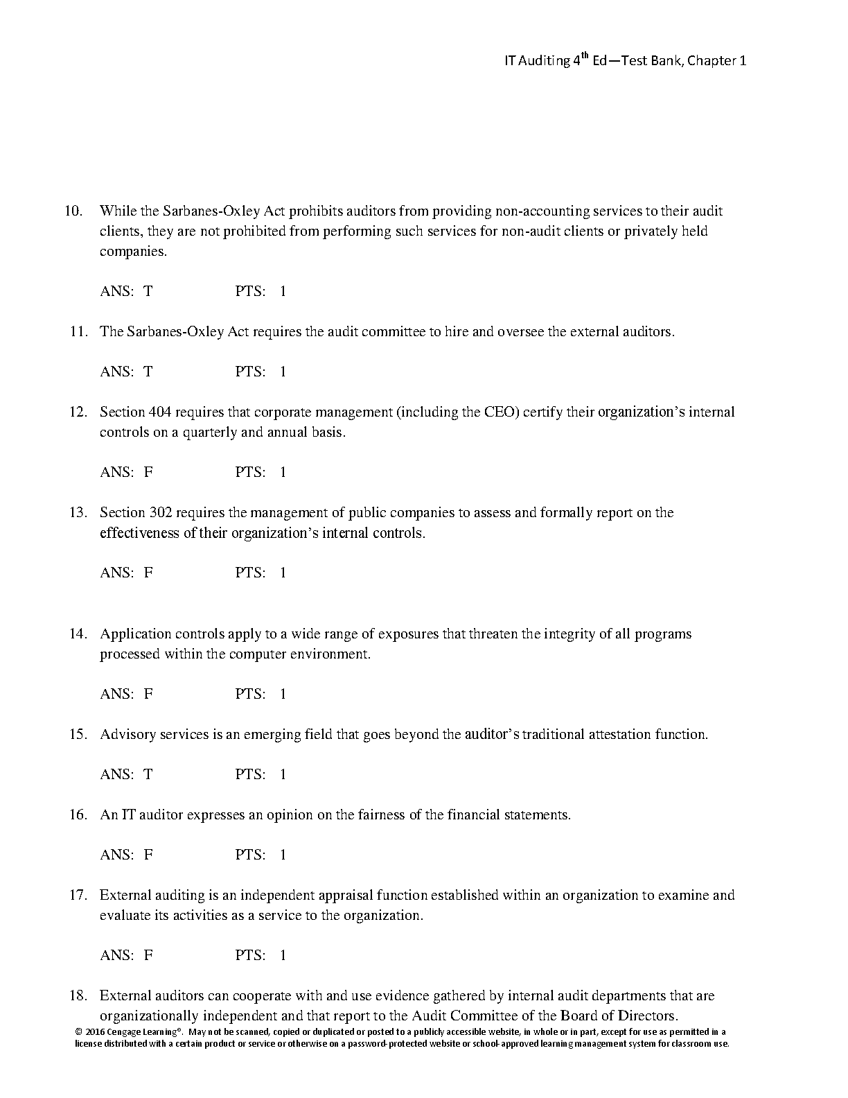 Test Bank for Information Technology Auditing, 4th Edition by James A. Hall - Complete Q&A