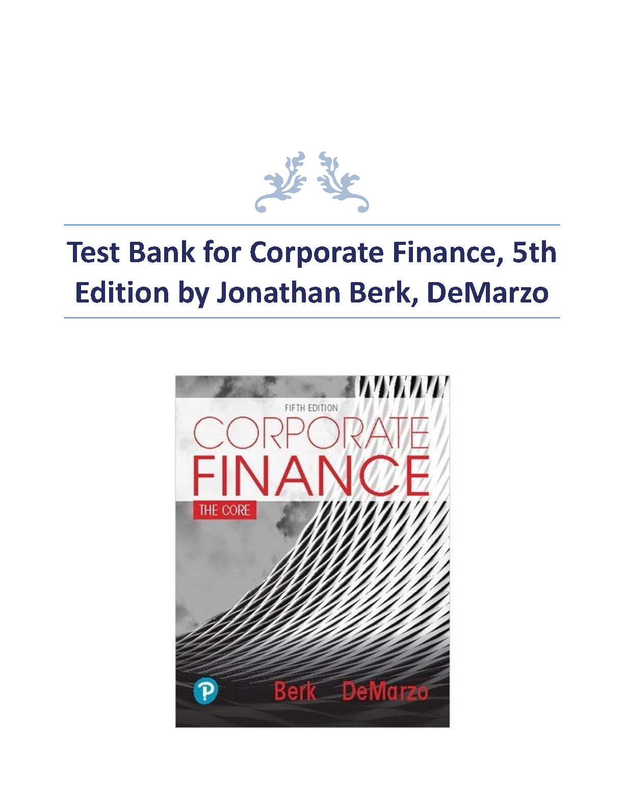 Test Bank for Corporate Finance: The Core, 5th Edition by Jonathan Berk, Peter DeMarzo