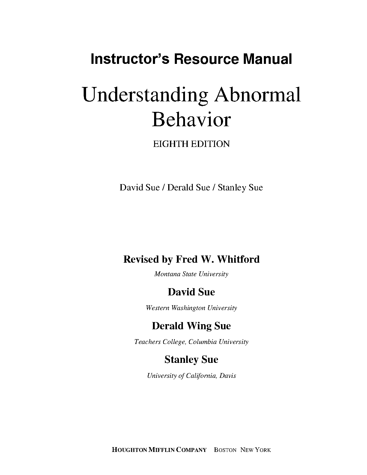 Test Bank for Understanding Abnormal Behavior, 8th Edition by David Sue, Derald Wing Sue, & Stanley Sue