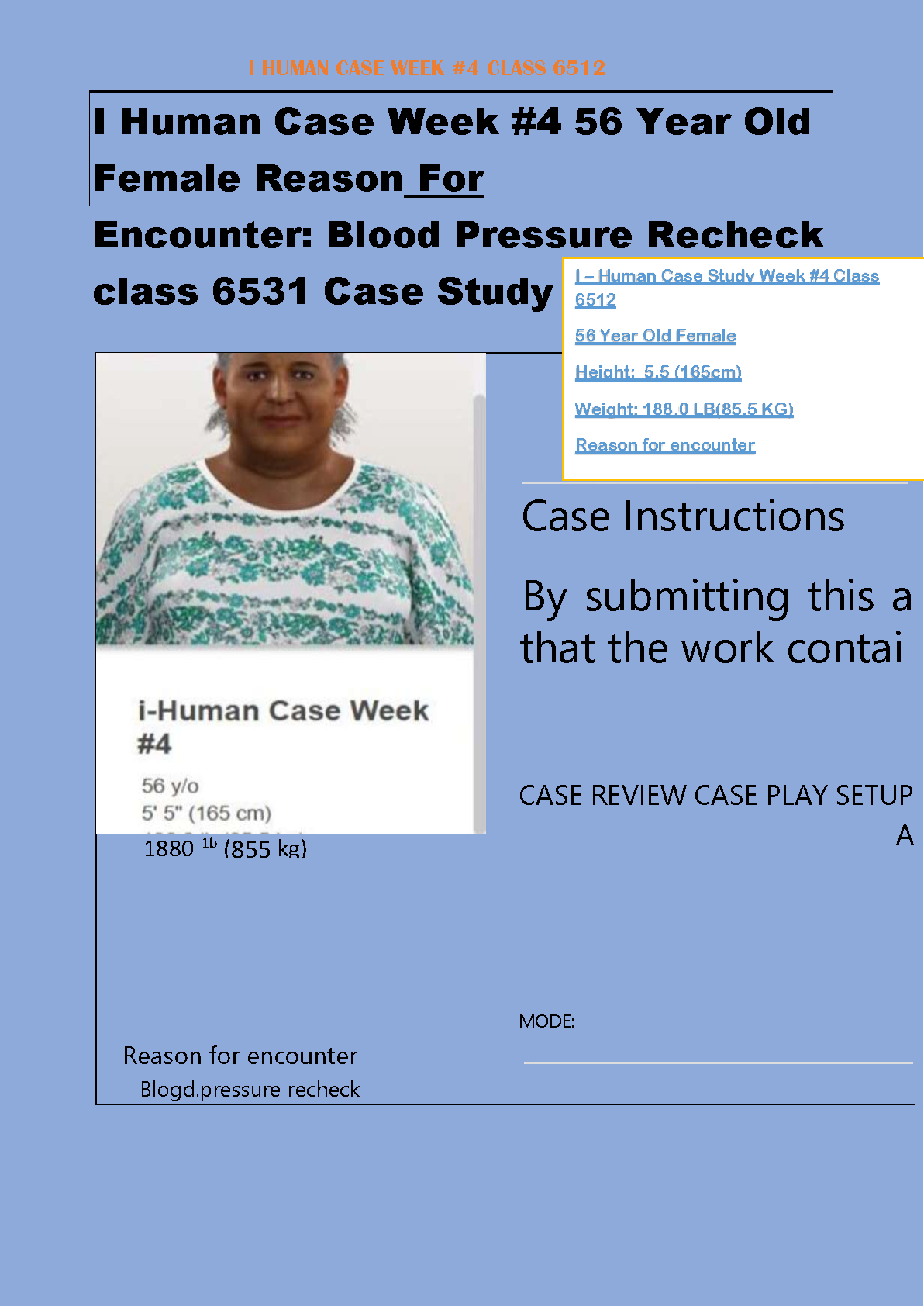 i-Human Case Study Week 4: 56-Year-Old Female Blood Pressure Recheck - Latest 2025/2026 Updated Guide to Pass First Try