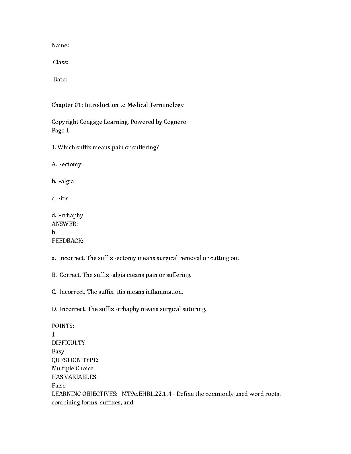 Unlock your potential and master the language of medicine with the official Test Bank for 'Medical Terminology for Health Professions, 9th Edition'. Authored by Ann Ehrlich, Carol L. Schroeder, Laura Ehrlich, and Katrina Schroeder Smith, this comprehensive resource covers all chapters (1-15) and is packed with a diverse range of exam-style questions, including multiple-choice, fill-in-the-blank, and matching. It's the ultimate study companion designed to help you test your knowledge, identify areas for improvement, and walk into your exams with confidence. Gain the edge you need to succeed in your health professions program.