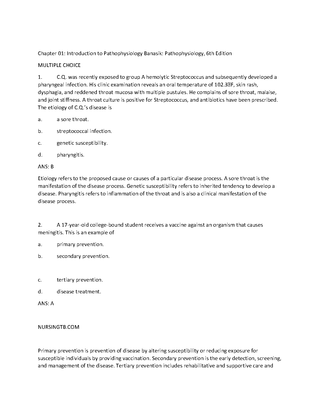 Unlock your full potential in pathophysiology with the official Test Bank for the 6th Edition of Banasik and Copstead-Kirkhorn's renowned textbook. This indispensable digital guide is packed with hundreds of practice questions and answers, mirroring the format and difficulty of your actual exams. Each chapter is covered in-depth, allowing you to thoroughly review complex topics and solidify your understanding. Gain the confidence to excel in your course with this instant-download study aid, designed to help you ace your tests and master the subject.