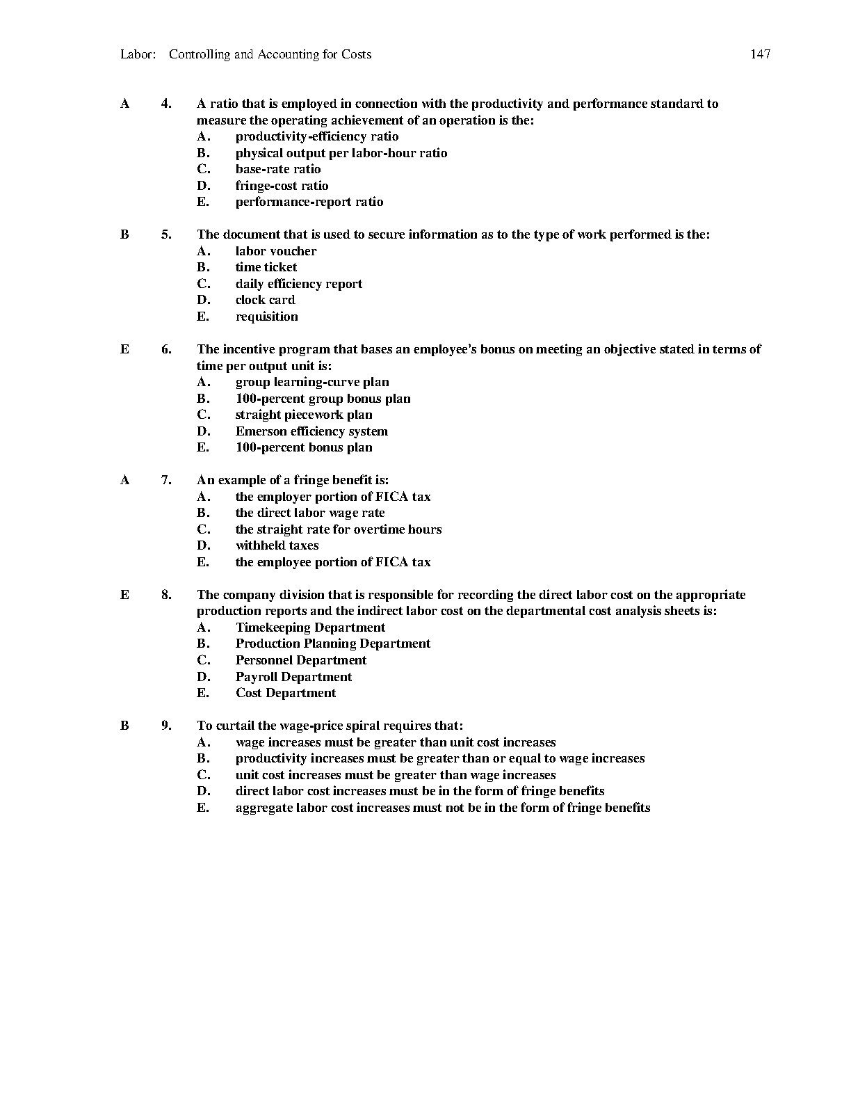 Cost Accounting: Planning and Control, 9th Ed. by Matz, Usry & Hammer - Chapter 11 Labor Costing Test Bank