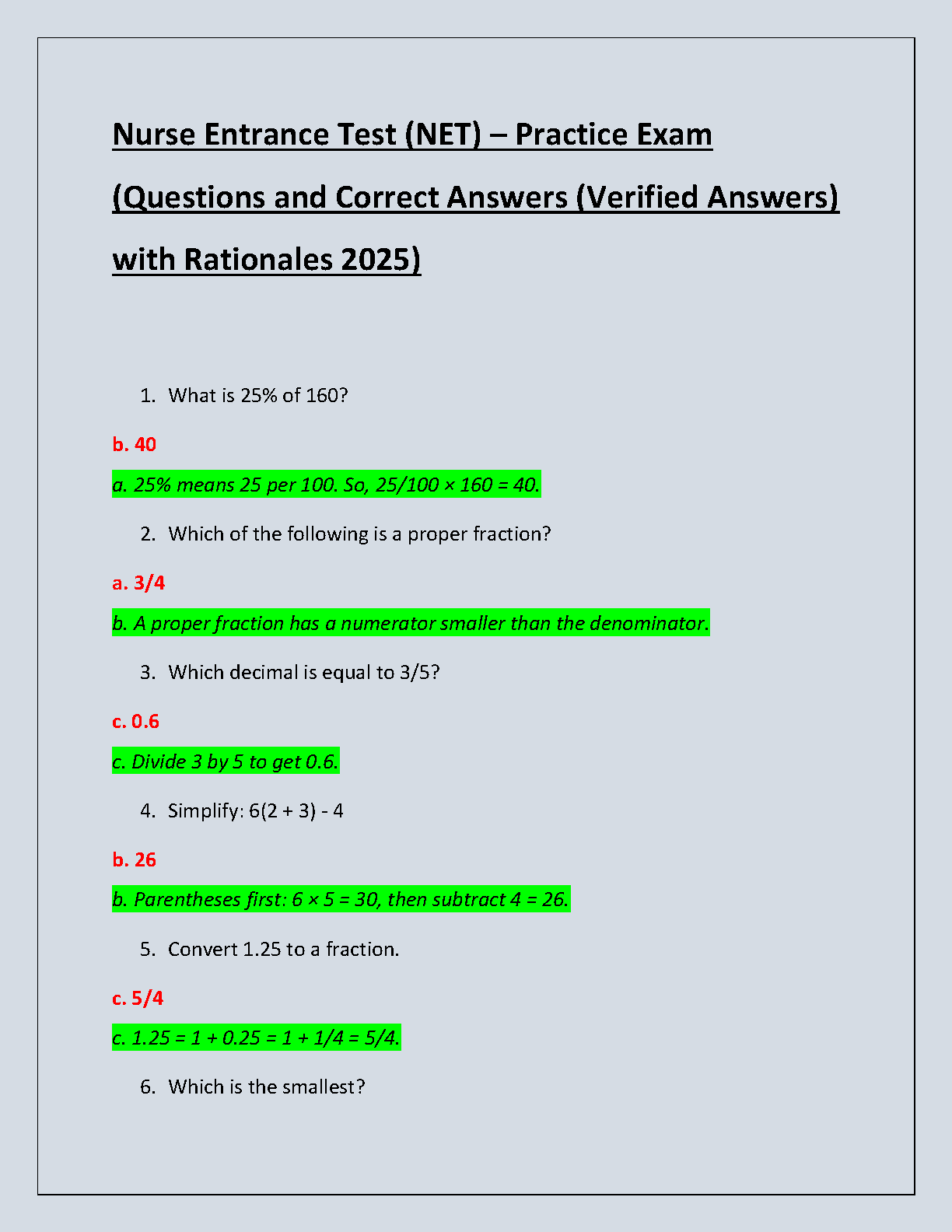 Excel on your Nurse Entrance Test (NET) with our comprehensive 2025 Test Bank. This essential study resource provides a full range of practice questions covering key topics, each complete with verified answers and detailed rationales. Deepen your understanding of the concepts behind each question, boost your confidence, and ensure you're fully prepared to pass the NET on your first attempt. Start your nursing journey successfully with this ultimate preparation guide.