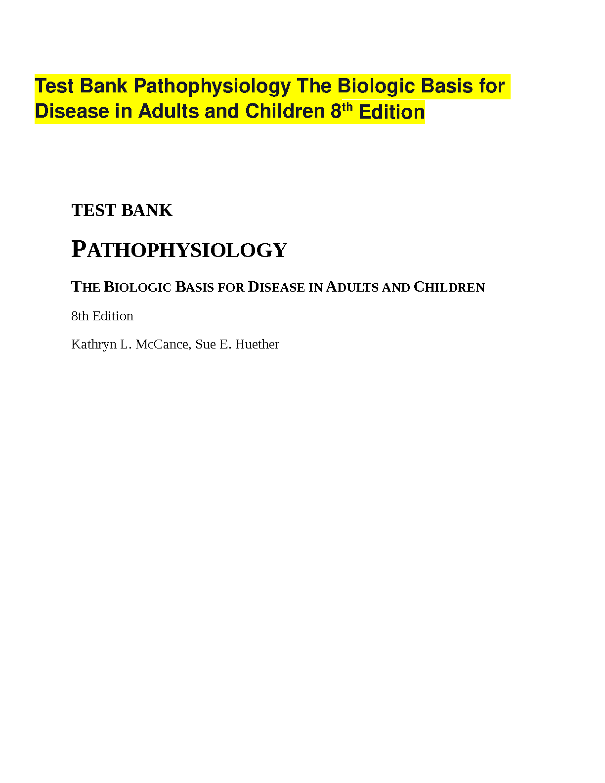 Test Bank for Pathophysiology: The Biologic Basis for Disease in Adults and Children, 8th Edition by Kathryn L. McCance and Sue E. Huether