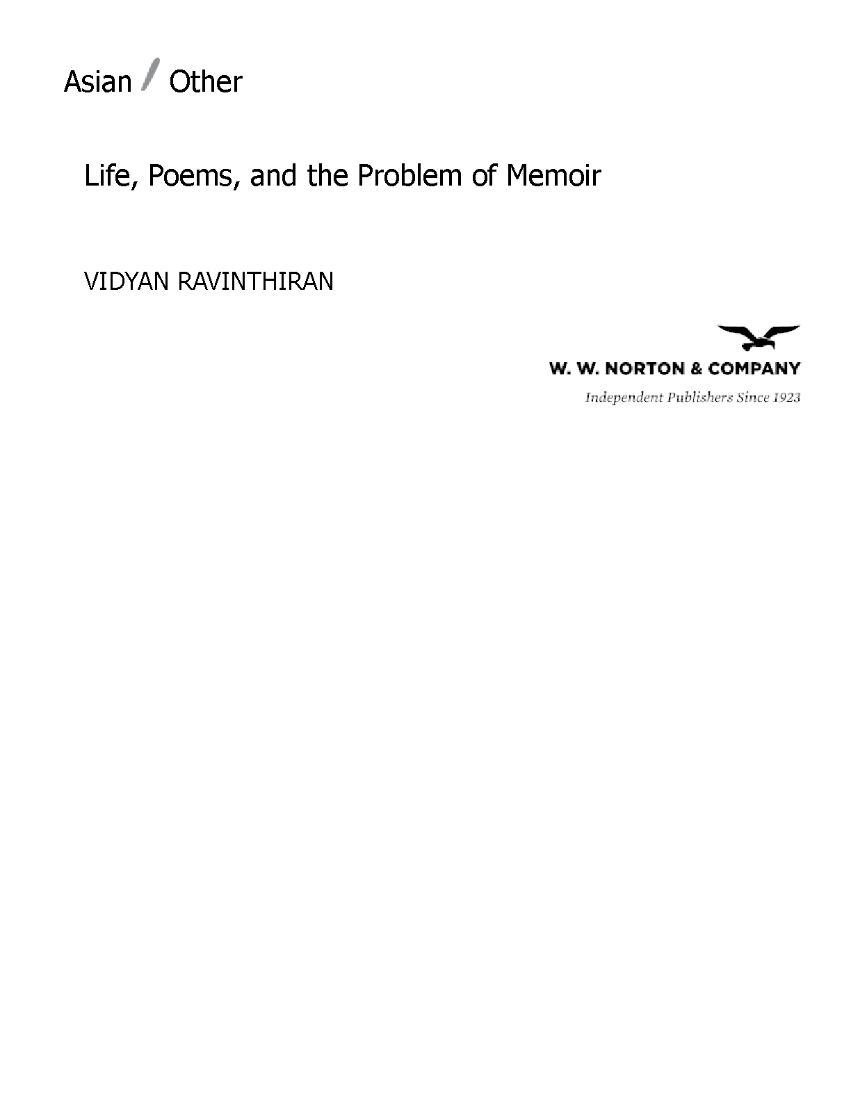 Asian Other: Life, Poems, and the Problem of Memoir, First Edition by Vidyan Ravinthiran - Essential Guide for 2025/2026 Literature & Cultural Studies Exams