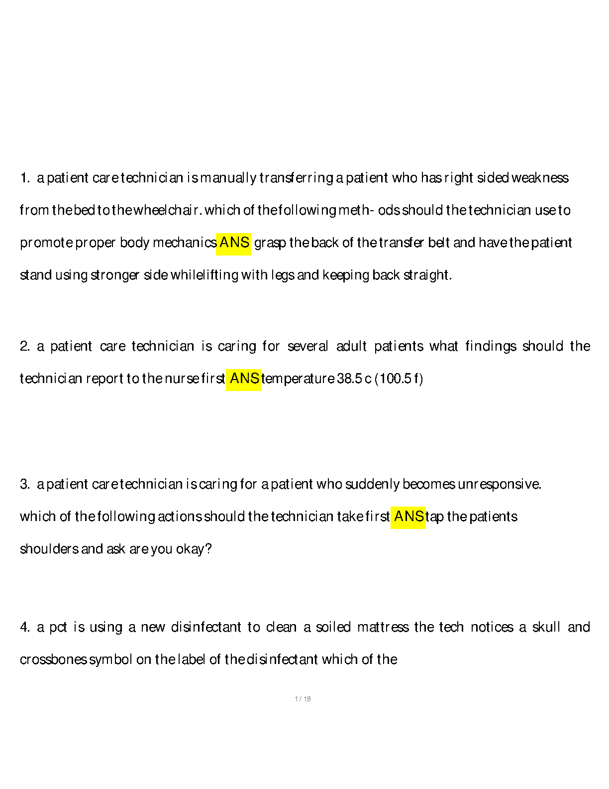Ace your National Healthcareer Association (NHA) Patient Care Technician (PCT) certification exam on your first try! This comprehensive test bank, updated for the 2025/2026 academic year, is packed with the latest practice questions and detailed, verified answers. Designed to mirror the actual exam format, this study guide is your ultimate tool for mastering key concepts and avoiding resits. Get the confidence you need to pass with this essential resource.